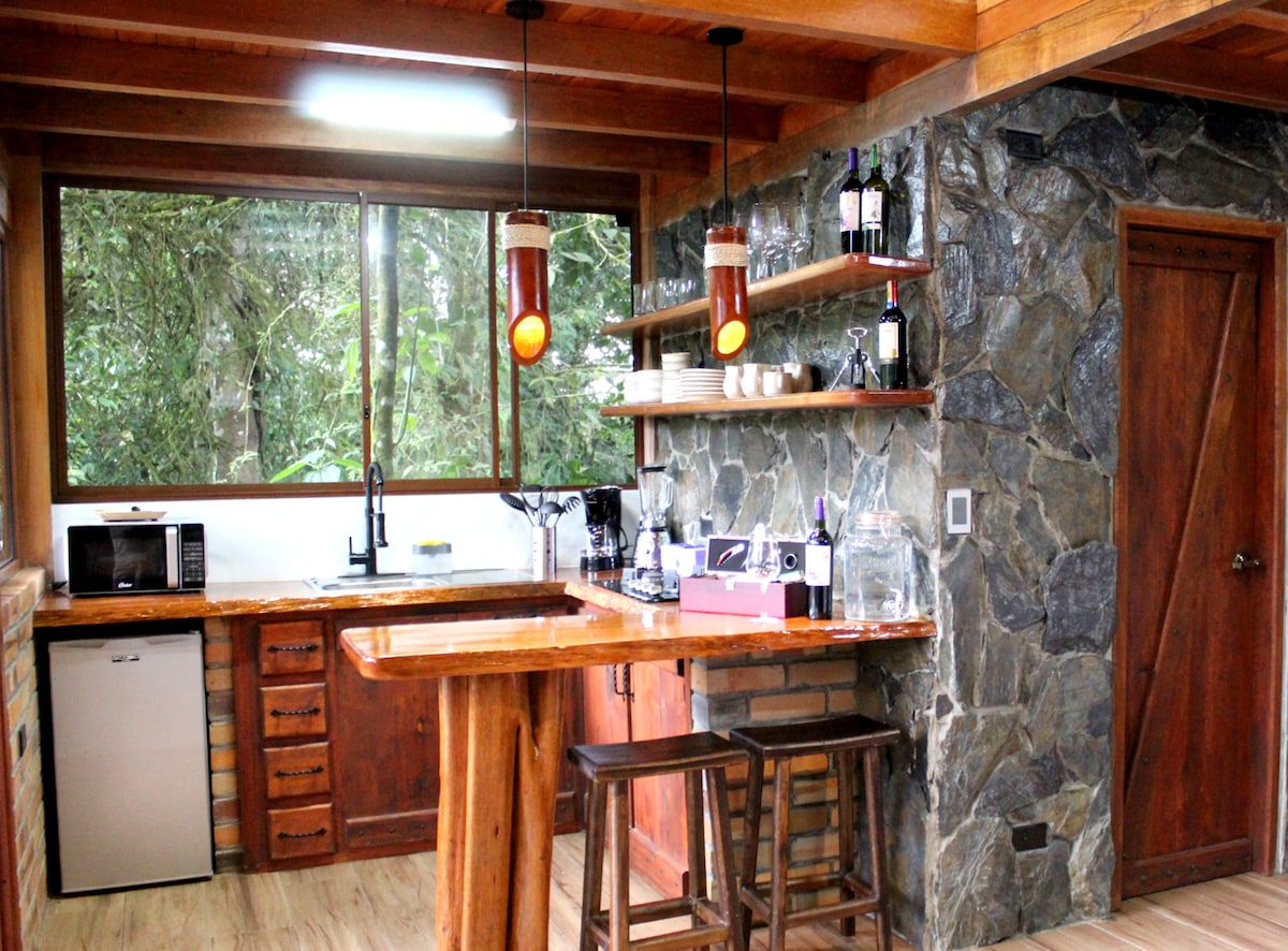 Privatni i nezavisni apartman, okružen prirodom i sa opuštajućim pogledom, nalazi se na 20 minuta od aerodroma. Idealno za parove ili putnike koji traže odmor, privatnost i jednostavan pristup gradu. Ima: - Parqueadero gratuito – Bračni krevet (širine 150–179 cm) sa vrhunskom posteljinom i tamnim zavesama - Opremljena kuhinja - Privatno kupatilo sa toplom vodom - Brzi Wi-Fi internet - Smart TV – Filtar kafa i šećer Uživajte u bašti i prostoru za logorsku vatru u mirnoj i bezbjednoj atmosferi, uz spektakularno vrijeme.