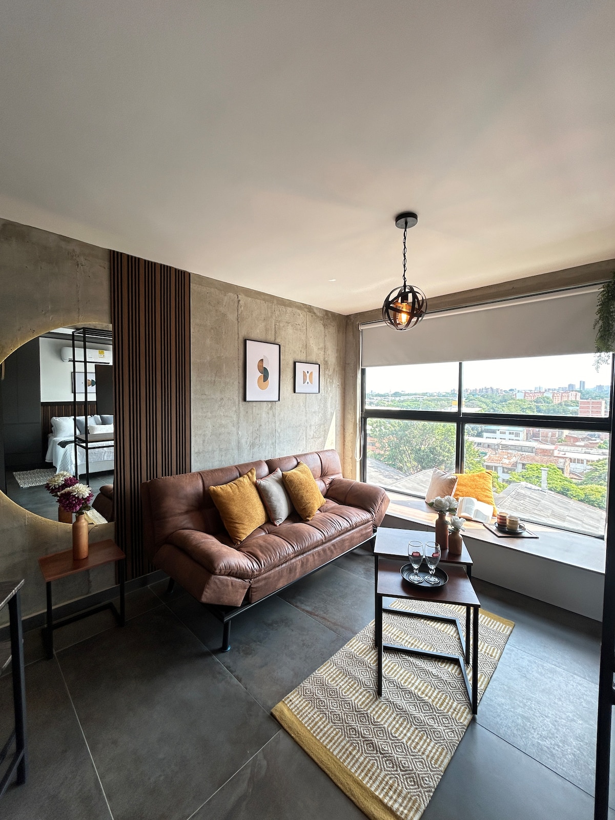✨Vive Cali desde el piso 12 con vistas únicas y brisa fresca🍃. Estudio moderno con cocina, sala, habitación y baño privado, cerca a todo. 🛏️Relájate con aire acondicionado, 2 TVs (sala y habitación), blackout y luces ambientadas. 🏊♀️❌actualmente fuera de servicio Piscina y bañera al aire libre. 💪Terraza 360°, coworking y gimnasio. 🚗Parqueaderos comunitarios por orden de llegada. 🌃Cerca de restaurantes, centros comerciales, universidades y atractivos turísticos.