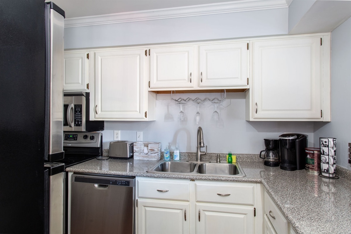 Uživajte u opuštajućem i elegantnom boravku u ovom kondominiju u centru grada, odmah pored Belmonta, Vanderbilta, Muzičkog reda, Hilsboro Vilidža i još mnogo toga. 2 spavaće sobe, 3 kreveta + vazdušni dušek, 2 kupatila, BESPLATAN parking, mašina za pranje/sušenje veša. Prošetajte do restorana, muzike uživo i kupovine. Samo 2 milje do Brodvejskih barova! Potpuno renoviran i profesionalno uređen. Brzi Wi-Fi, bračni kreveti u spavaćim sobama, kablovska TV i potpuno opremljena kuhinja. Odsjednite ovdje i doživite nevjerovatan doživljaj Nešvila!
