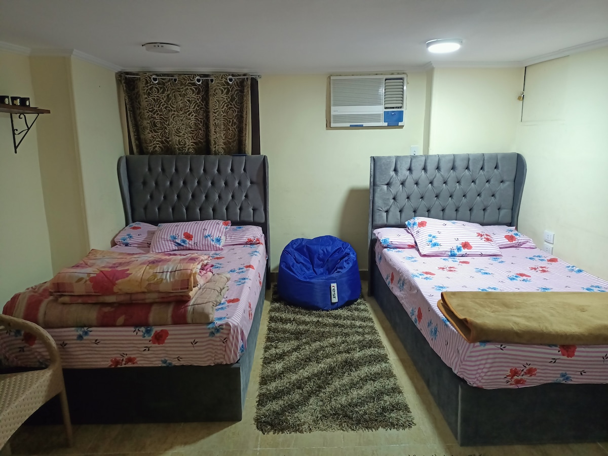 Dođite i uživajte u našem prostranom i elegantnom prostoru u Nasr Sitiju, živahnom i živahnom okruženju u Kairu. Imaćete sve što vam je potrebno u našem potpuno opremljenom prostoru, što obuhvata 2 spavaće sobe, privatno kupatilo, dnevni boravak, trpezariju i veliki balkon. Prostor se nalazi na trećem spratu i dostupan je samo stepenicama. Svideće vam se naša lokacija, koja se nalazi u blizini tržnih centara i mesta za zabavu. Čekamo vas da se uselite!