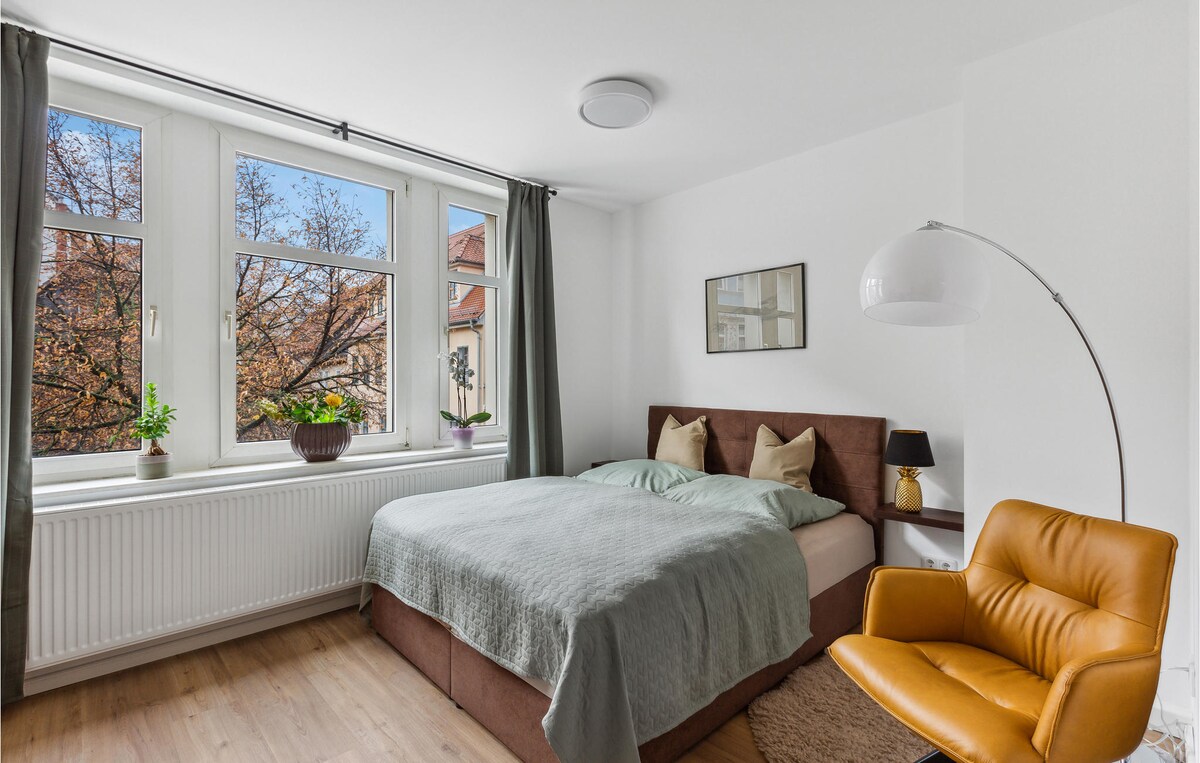 Uživajte u elegantnom smještaju u ovom mirnom, ali mirnom prostoru u centru grada. Zbog lokacije u prizemlju i tuš-kabine s prilagođenim pristupom, stan je odlično pogodan za putovanja za osobe koje su u invalidskim kolicima ili imaju druga ograničenja kretanja. Sa dekorom u boemskom stilu, stan je šarena radost u životu, lakoći i kreativnosti. Istražite region i opustite se od napornog dana!