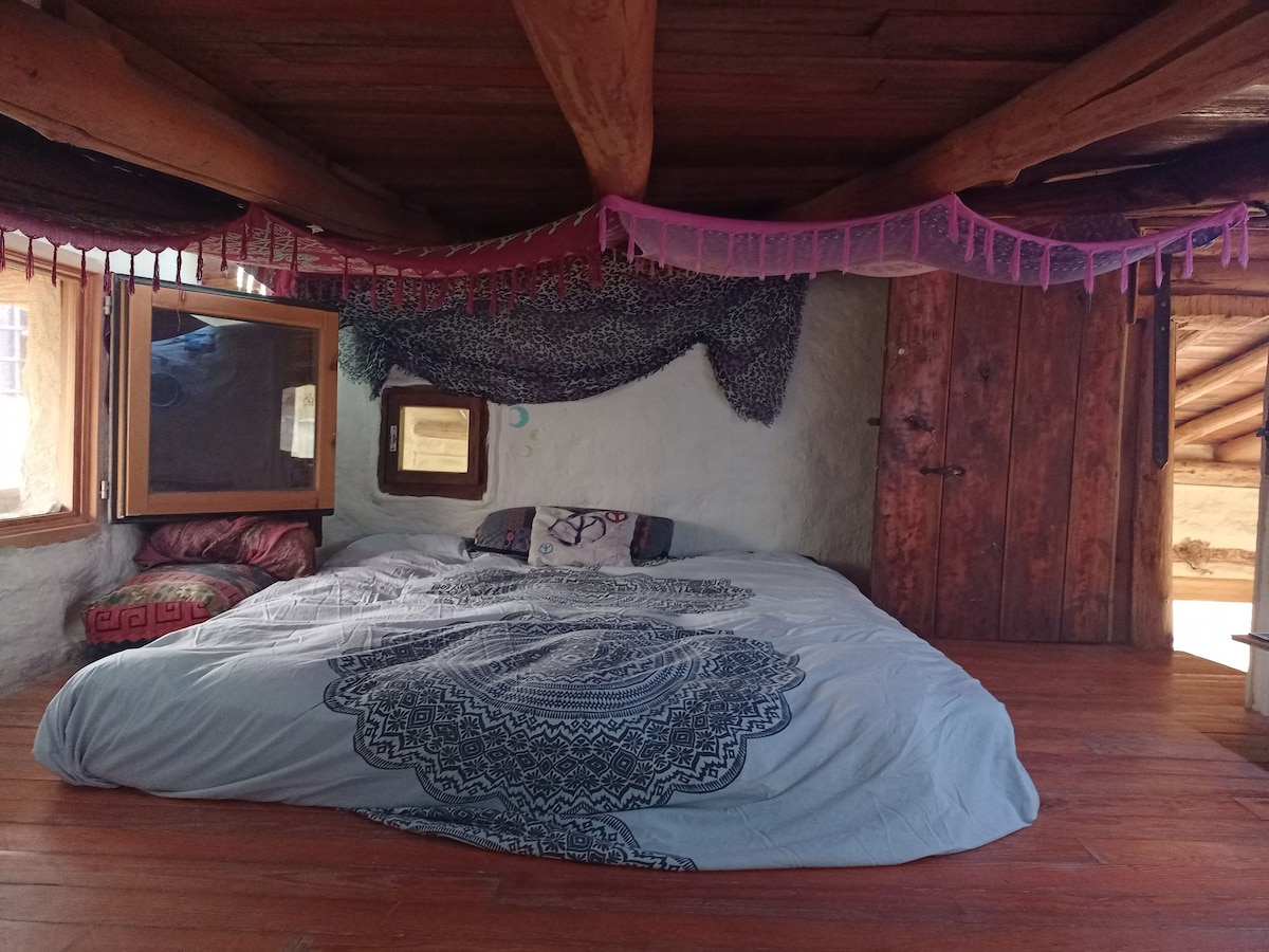 Una cabaña en árboles apartada del agroturismo, a 100 metros dentro de un bosque de robles. 25 m ² de cabaña con un baño con agua corriente y un wc seco . Una terraza de 12 m² con unas vistas preciosas dentro del pirineo de Navarra. Un lugar especial donde vivir toda una experiencia con tu pareja o familia. No tiene luz eléctrica pero dispone de faroles y velas. Servimos desayunos y cenas ecológicos. Tenemos una tienda para comprar productos elaborados en casa y de productores locales.