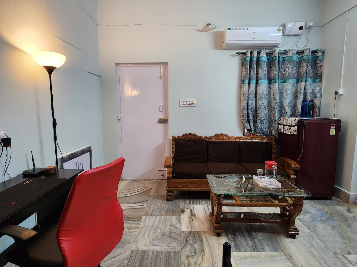 Dobro došli u Amber & Jade Stays, vaš udoban dom daleko od doma u mirnom predgrađu Bhubaneswara. Ovaj elegantni 1BHK spaja udobnost i prirodu sa svijetlim dnevnim boravkom, potpuno opremljenom kuhinjom i plišanom spavaćom sobom. Uživajte u modernim sadržajima kao što su Wi-Fi, klima-uređaj i pametni TV u mirnom okruženju prikladnom za kućne ljubimce okruženom zelenilom. Savršen je za parove, putnike ili osobe koje rade na daljinu i traže mir i praktičnost. Povedite svog krznenog prijatelja i opustite se u smještaju Amber & Jade. 🐾