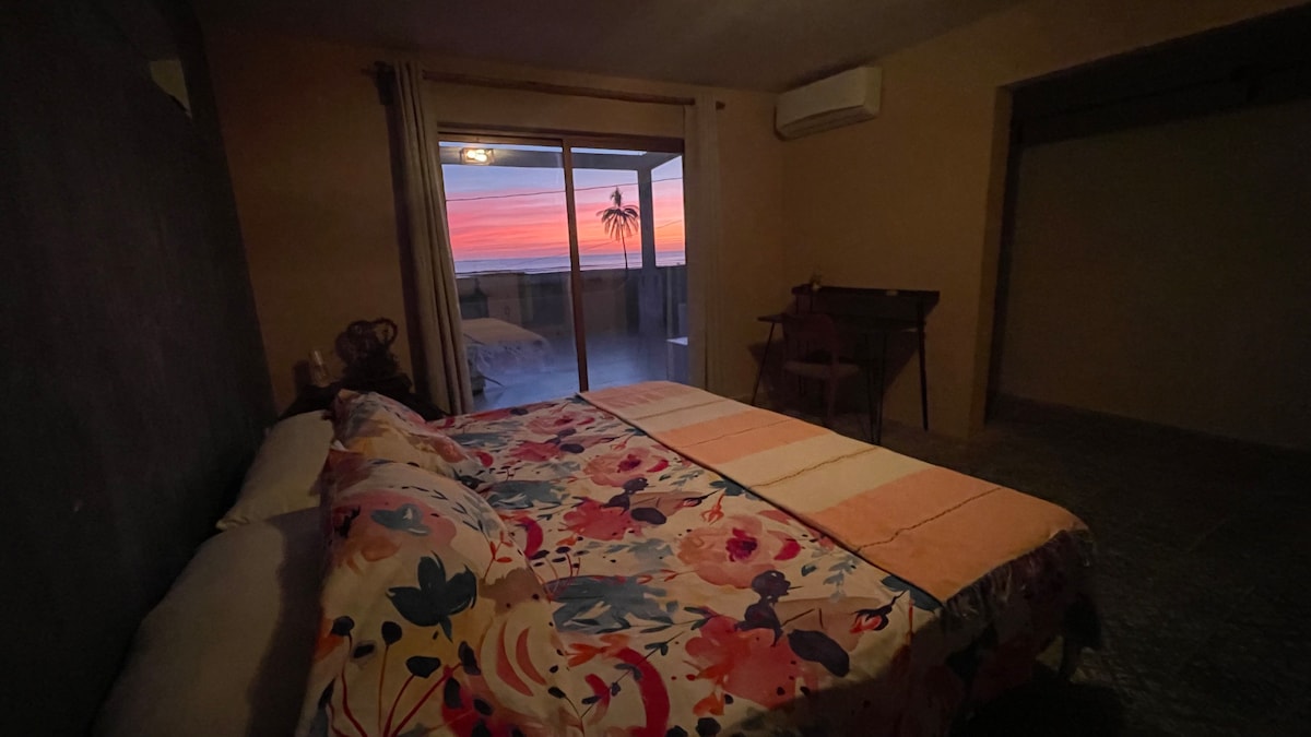 Uživajte u našoj udobnoj kući na plaži sa 360 pogleda. Svaka soba ima privatno kupatilo i privatni veliki balkon na kojem možete da vidite predivan izlazak i zalazak sunca. Mini frižider i topla/hladna voda su uključeni. Zajedničke prostorije uključuju krovnu terasu i bazen sa prostorom za opuštanje. Udaljeni smo samo nekoliko koraka od plaže Playa hermosa. Odlična plaža za surfovanje i plivanje. U blizini je playa borrego sa sjajnim ramadama u blizini da biste zgrabili ukusan obrok ili svježi kokos. Samo za odrasle i 420 ljudi.