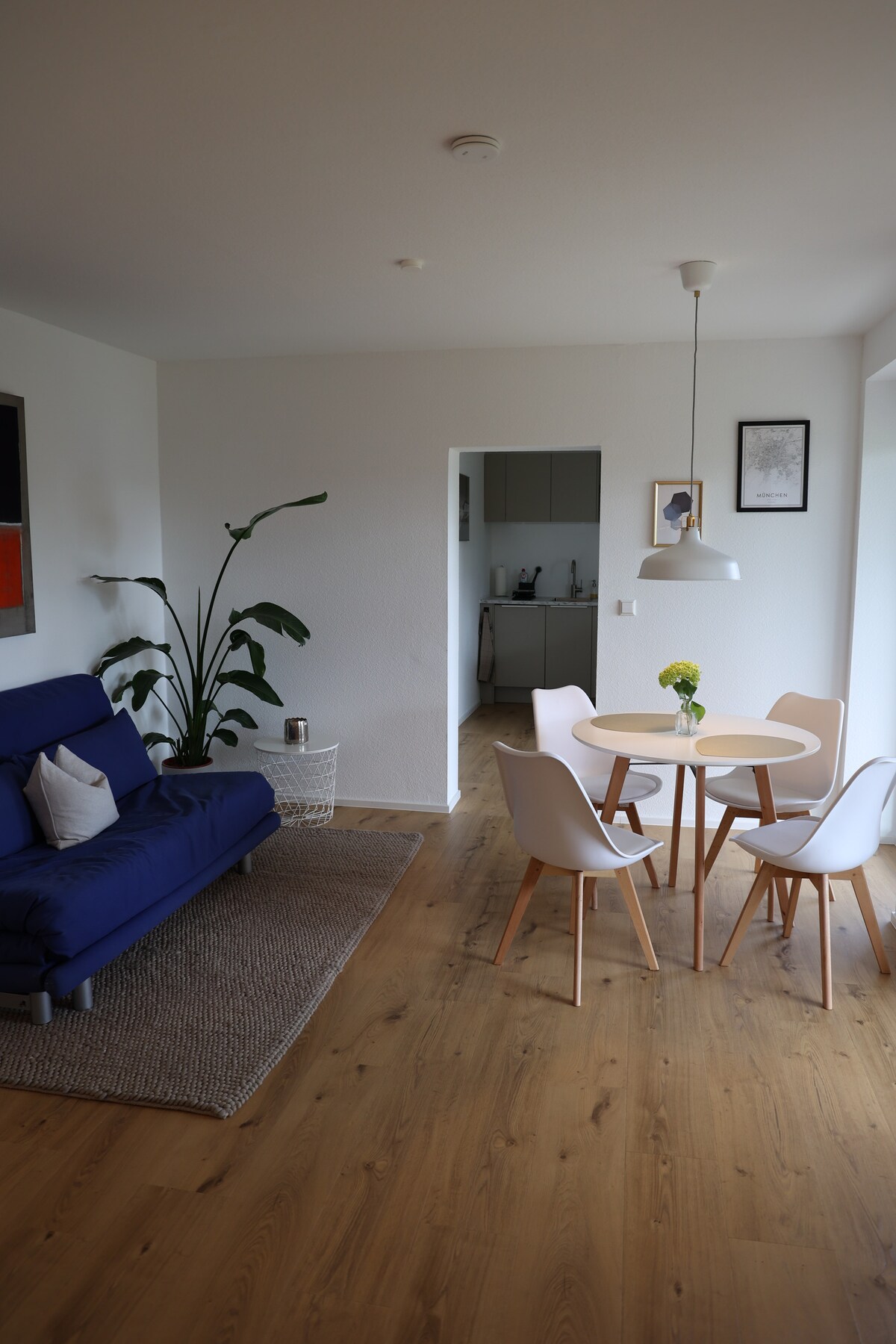 Centralni, svijetli stan od oko 45 m² u istorijskoj kući od drveta i kamena – savršen za odmor, sajmove i poslovna putovanja. Restorani, pivski vrt, pekara, mesara i supermarket udaljeni su samo nekoliko koraka. Jezero Ailesvasen i Jakobsweg su odmah pored kuće. Brza veza sa sajmištem i aerodromom u Štutgartu i tržnim centrom Metzingen. Idealno za parove, planinare, porodice i poslovne putnike.