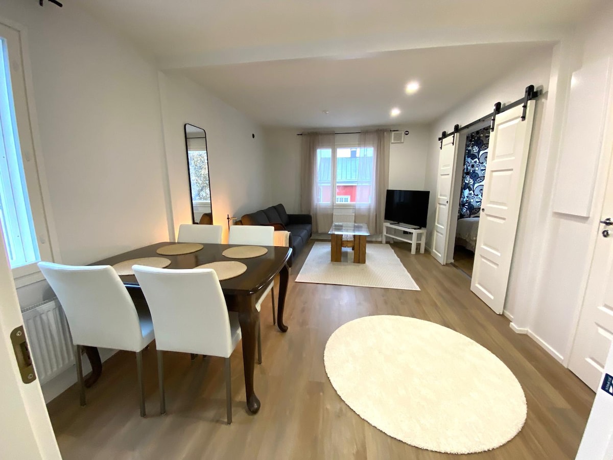 Živite jednostavnim životom u ovom mirnom i centralno smještenom domu. - Novouređeni cijeli stan. - Stan od 50 m2 sa 2 spavaće sobe,kuhinjom i kupatilom - Bračni krevet + 1 krevet za jednu osobu + dodatni dušek po potrebi - Frižider i zamrzivač,mikrotalasna rerna, aparat za kafu i mašina za pranje veša – Posteljina i peškiri su spremni - Udobna sjenica s kaminom u dvorištu - 2 km do plaže - 800 m do riksåttana 25 km do Kokkole i 14 km do Jakobstada Napomena: 140 M2 U DRUGOM APARTMANU BJÖRKTORPET LUXURY SA SAUNOM CENA 15% VIŠE PO NOĆENJU.