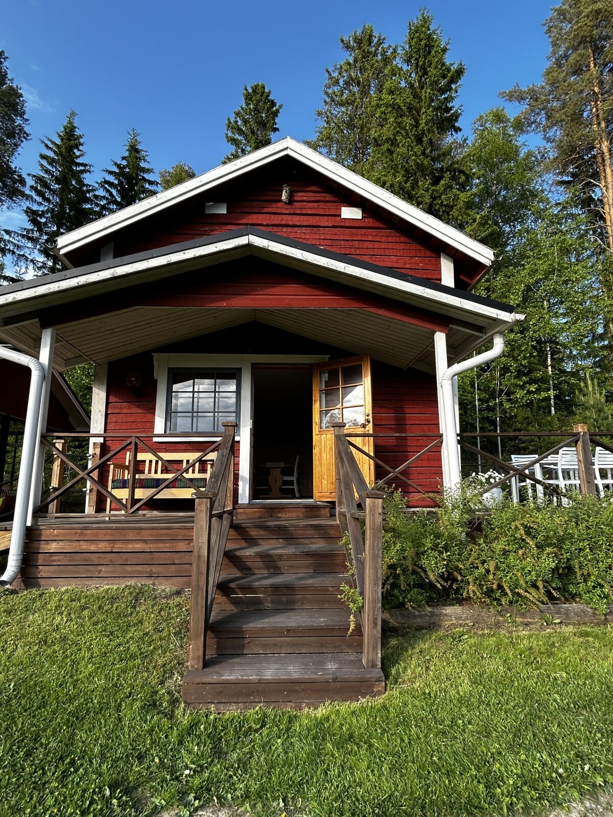 Mirna vila pored jezera. Površina: 80 m2 u zatvorenom prostoru + velika terasa i sauna na otvorenom Broj kreveta je 6 odvojenih kreveta. Sobe: Kuhinja, dnevna soba, 3 spavaće sobe, hodnik, hodnik, kupatilo +sauna Objekti: kamin, frižider/zamrzivač, električni šporet i rerna, mašina za sudove, mikrotalasna rerna, aparat za kafu, kuvalo za vodu. Na imanju se nalazi još jedna sauna na plaži.