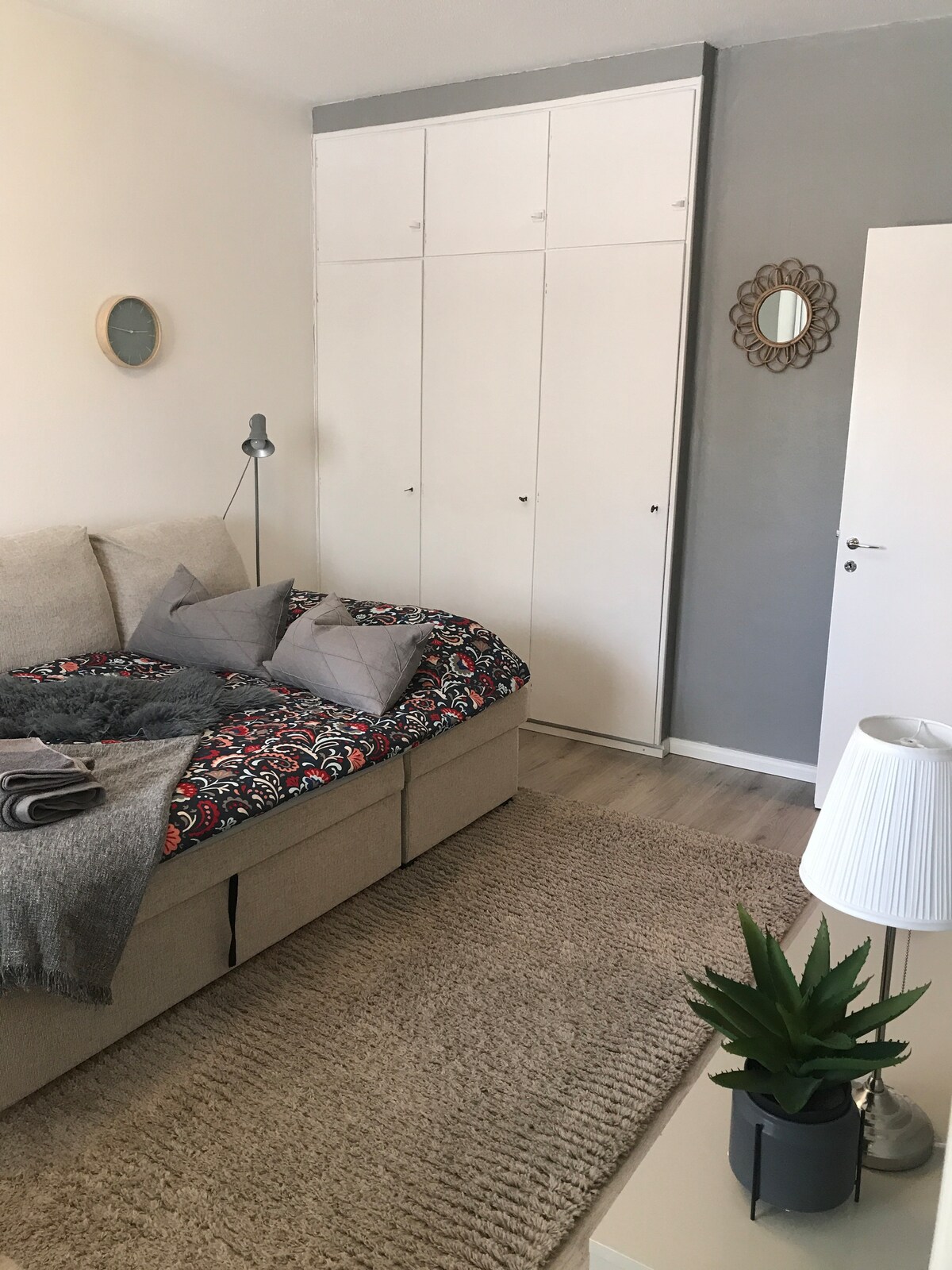 Ovo je udoban studio apartman u kojem možete ostati i duže! * krevet 140 cm * 80 cm rasklopivi pomoćni krevet * mašina za pranje veša * parking mesto sa utičnicom za grejanje na drugoj strani ulice * mini kuhinja sa dobrim priborom za kuvanje * TV * mogućnost korišćenja saune petkom Posteljina i peškiri su uključeni u cenu prema broju gostiju. Kuća se nalazi u blizini R-kioska i Minimania, na oko 1,5 km od centra grada.