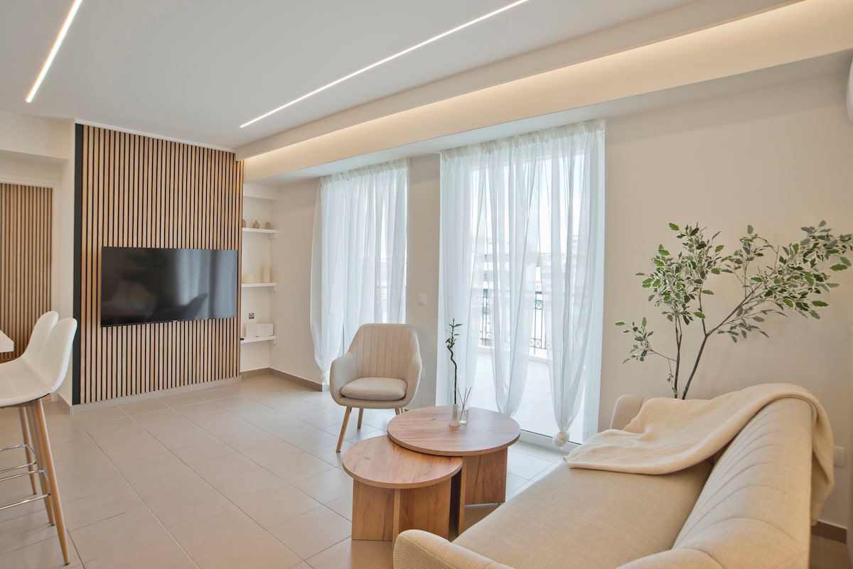 Doživite savremenu Atinu iz ovog prostranog dvosobnog stana sa 2 kupatila u živopisnoj četvrti Kukaki, na nekoliko koraka od Akropolja i najboljih gradskih kafića i galerija. Čiste linije i umirujuće nijanse stvaraju mirno utočište s privatnim balkonom s pogledom na brdo Filopapu. U zgradi sa liftom Specijalno izrađeni bračni kreveti (širine 150–179 cm) sa posteljinom, sofa na razvlačenje, klima-uređaj u svakoj sobi, brzi Wi-Fi i pametni televizori. Šetajte svuda, vratite se udobnosti i uživajte u gradu bezbrižno.