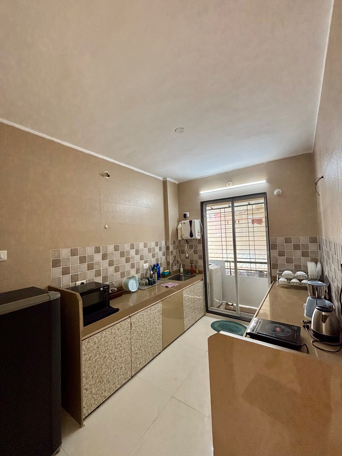 Spacious and well-maintained 1BHK apartment in Ulwe, near Navi Mumbai International Airport. Ideal for families, professionals, and medical or business travelers. The apartment features a separate bedroom, living area, fully functional kitchen, AC, Wi-Fi, smart TV, and attached bathroom. Located in a secure residential building with nearby shops and public transport. 10 mins to Apollo hospital 5 mins to Atal Setu 5 mins to Navi Mumbai Airport 15 mins to seawoods mall