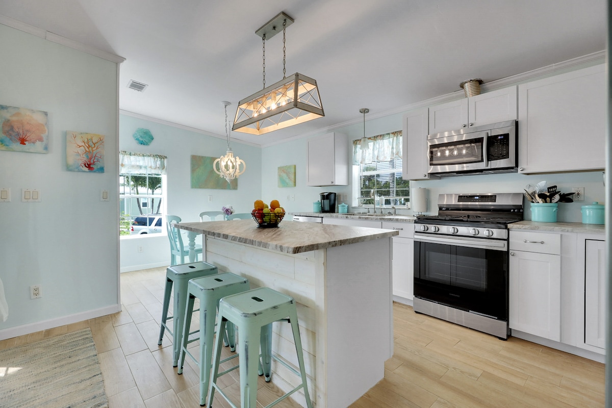 Koraci od peska! Pobjegnite u ovaj prelijepo preuređeni 3BR/2BA priobalni smještaj samo nekoliko koraka od plaže Vaveland na ostrvu Hačinson! Uživajte u privatnoj oazi u dvorištu sa mini zelenilom, roštiljem i restoranima na otvorenom. Opustite se u prostranom dnevnom boravku, kuvajte u potpuno opremljenoj kuhinji i mirno spavajte u luksuznim krevetima. Prošetajte do najbolje ocijenjenih restorana, kafića i smještaja blizu plaže. Brzi WiFi, pametni televizori i kućni ljubimci!