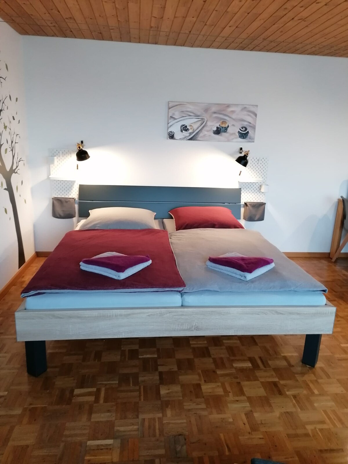 Dobro došli u naš novouređeni i elegantni 2,5-sobni stan na posljednjem spratu u Eggingenu! Prostrana dnevna soba sa pametnim TV-om i Wi-Fi mrežom (uklj. Netflix UHD) vas poziva da se opustite. Potpuno opremljena kuhinja ima sve što vam treba za pripremu omiljenih jela. Jedna spavaća soba s krevetom s oprugama garantuje dobar i opuštajući san. Švajcarska granica je udaljena samo oko 5 minuta, a odličan restoran se nalazi u istoj zgradi - šta biste još mogli da poželite?