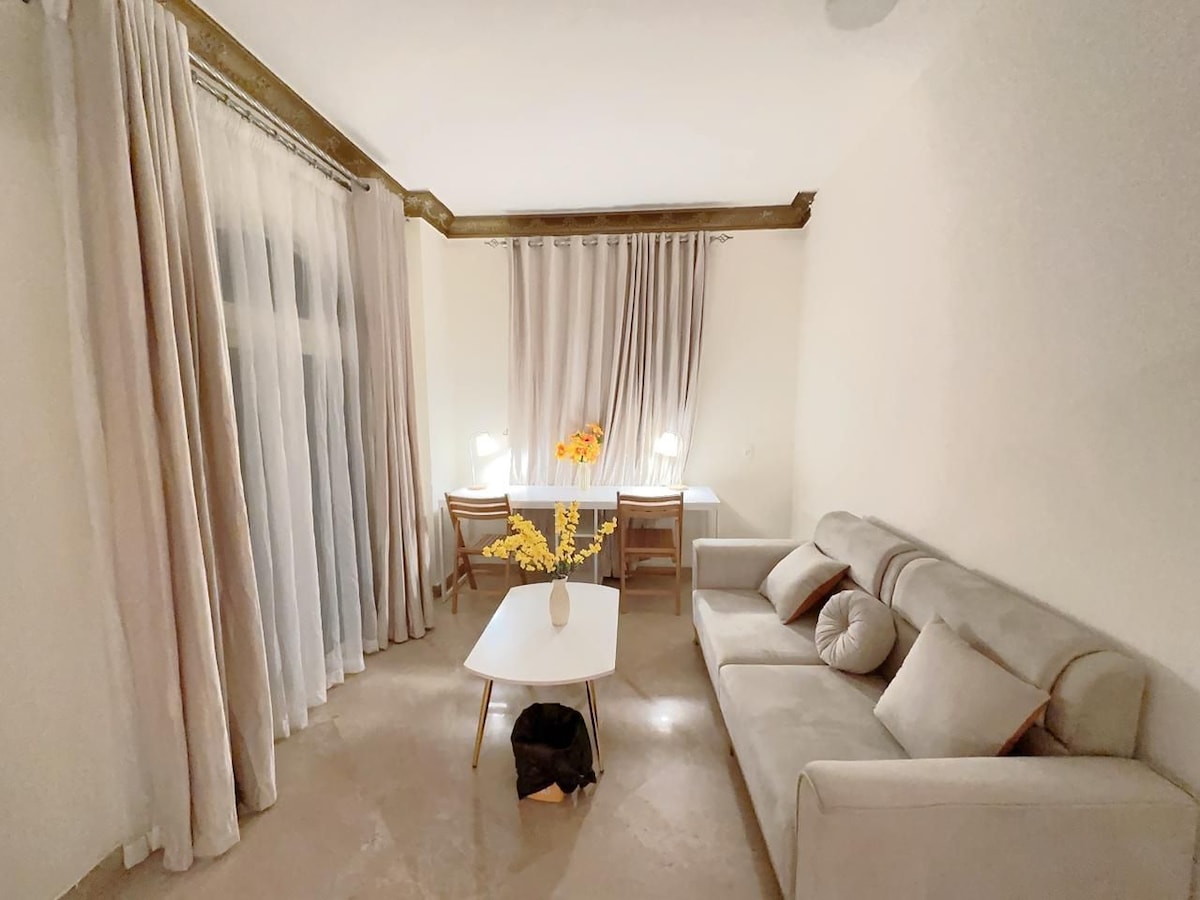 Odsjednite u otmjenom smještaju koji je u blizini svega što želite da posjetite. Savršeno za parove/porodice/poslovne putnike Mjesto unutar kompleksa u Novom Kairu, vrlo blizu Međunarodnog kongresnog centra i tržnog centra Cairo Festival Mall, udaljeno 10 minuta automobilom
