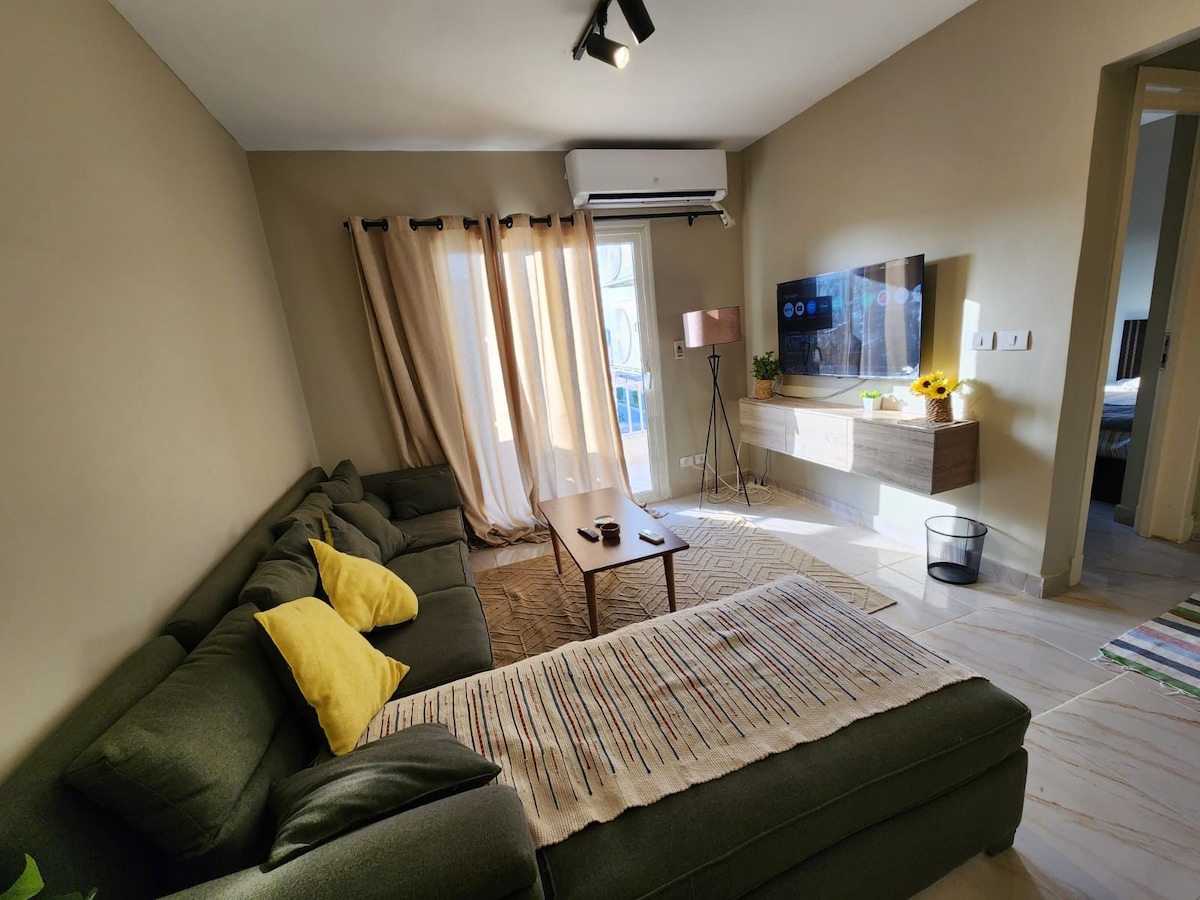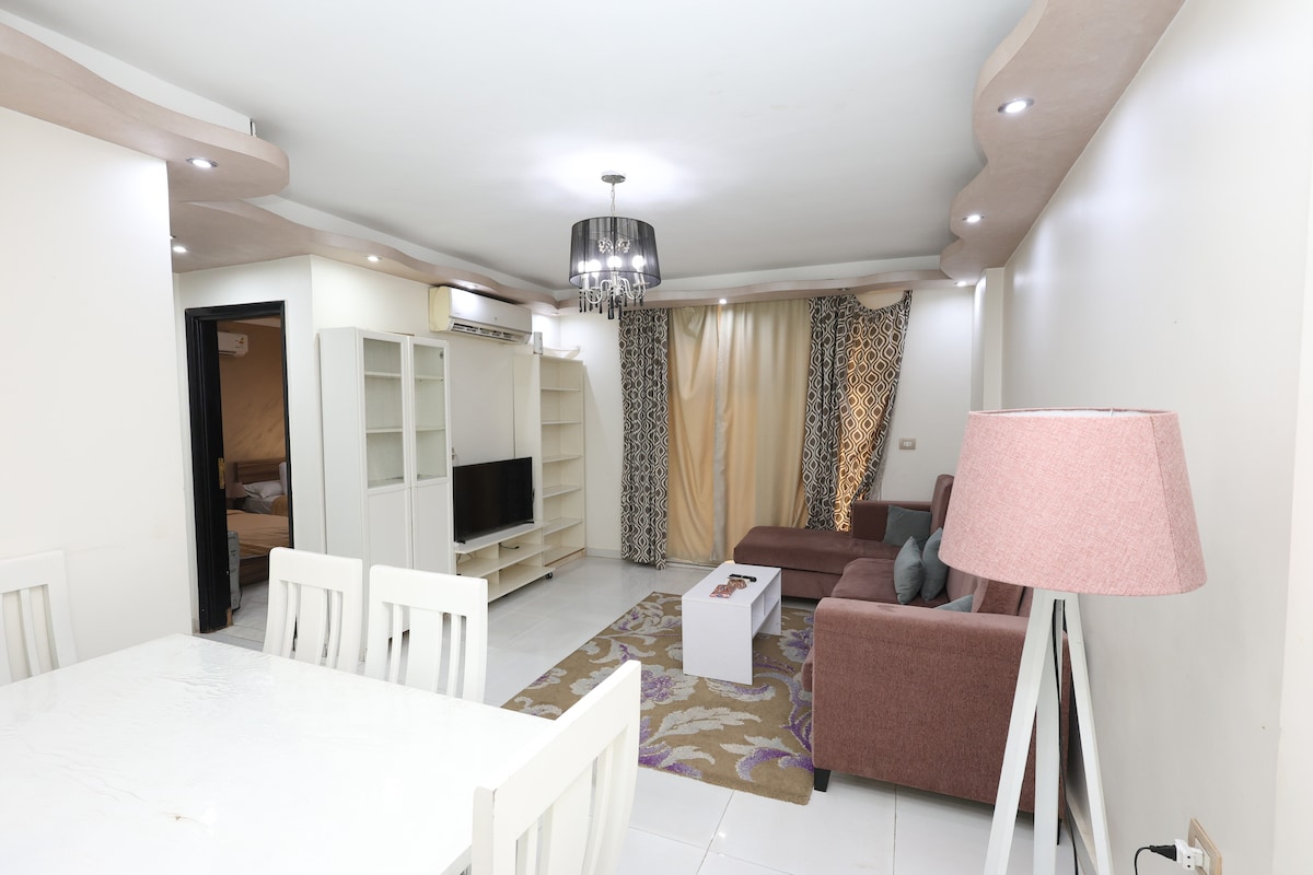 ★ Dobro došli u naše omiljeno utočište za goste u srcu Šeratona Heliopolisa! ★ Ovaj besprekorni, potpuno renovirani 3BR stan idealan je za porodice ili poslovne putnike. Samo 10 minuta od aerodroma Cai, ima potpuno opremljenu kuhinju, elegantan dnevni boravak sa satelitskom televizijom i 1,5 kupatilo za udobnost. Prošetajte do živopisnih prodavnica i restorana ili lako pristupite glavnim autoputevima. Čeka vas spokojna i praktična baza u Kairu.