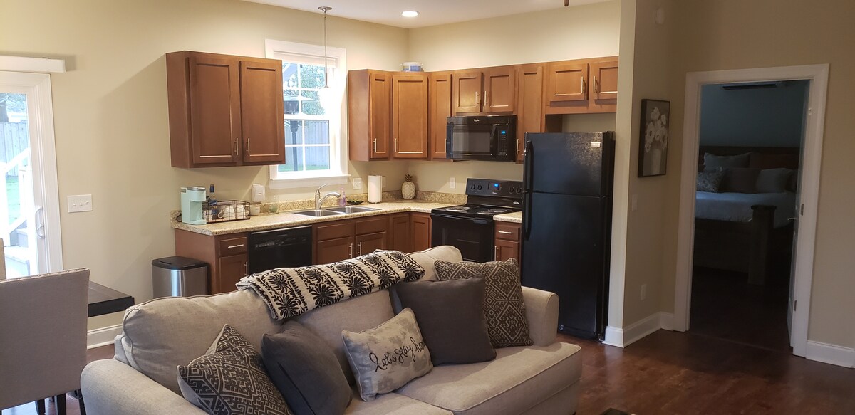 Opustite se u našem jednosobnom apartmanu u garaži. 7 milja od plaže Karolina. U blizini centra grada i plaže Rajtsvil. U jedinici ćete naći frižider, mikrotalasnu rernu i aparat za kafu. Dnevni boravak sa zajedničkim kuhinjskim kutkom i spavaćom sobom sa 1 bračnim krevetom i kupatilom. Takođe i mašinu za pranje veša i veoma malu mašinu za sušenje veša. Privatna jedinica sa zasebnim ulazom i samostalnom prijavom. Prijava je postavljena na 17:00, nemam problema sa ranom prijavom, ako je moguće. Samo pitajte!