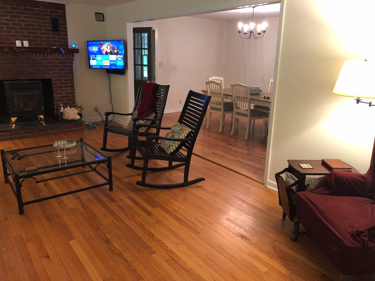 Zakoračite u elegantnu i mirnu brvnaru 3BR 2.5BA u istorijskom okrugu Merryall u blizini prodavnica, jezera, planinarskih staza, farmi i centra Nju Milforda i Kenta. Istražite živopisno područje i uzbudljive atrakcije ili se opustite pored kamina ili ognjišta u čarobnom dvorištu. ✔ 3 udobne spavaće sobe ✔ Dnevni boravak i prostorija za sunčanje Hidromasažna kada na ✔ drva ✔ Profesionalna kuhinja ✔ Kancelarija/biblioteka ✔ Knjige, vinili i igre ✔ Trijem, dvorište i ognjište ✔ Pametni televizori ✔ Brzi Wi-Fi ✔ Veš Pogledajte više u nastavku!