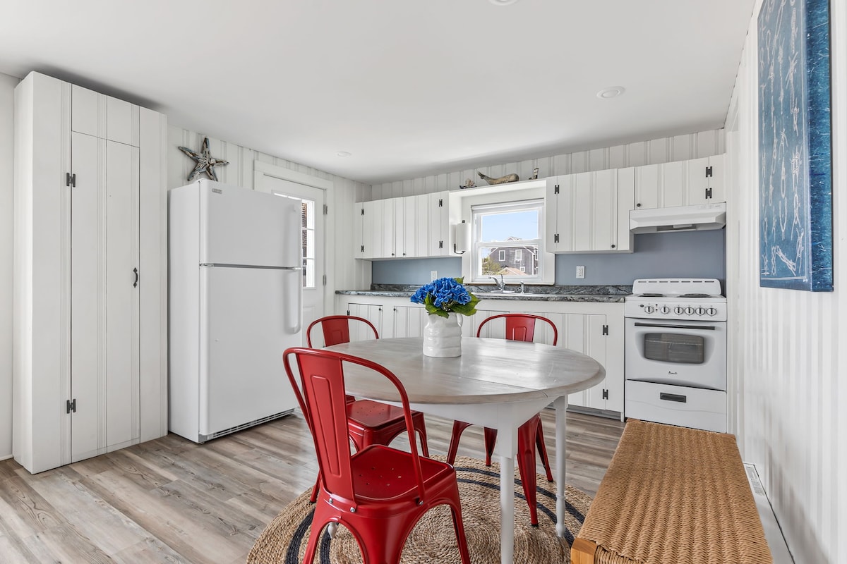 Uživajte u ovoj renoviranoj nekadašnjoj kući ušuškanoj u neobičnoj rezidencijalnoj sporednoj ulici na ostrvu Plum u Masačusetsu. Opustite se na privatnoj terasi i čitajte knjigu, uživajte u sunčanju u sjenici ili nazdravite sljezovim kolačićima u dvorištu iza kuće. Samo nekoliko minuta hoda od plaže ili mirnih voda bazena, malog ulaza u ušće reke Merrimac. Neki od naših sadržaja uključuju: - 2 spavaće sobe (1 bračni krevet, 1 bračni krevet) opremljene dušecima od memorijske gel pjene. - 1 kupatilo sa tuš kabinom i podom sa grejanjem - Smart TV - Besplatan bežični internet - Klimatizovano - Kompletna kuhinja - Mašina za pranje / sušenje veša - Plinski kamin - Parking van ulice za dva automobila. - Privatna terasa i dvorište - Posteljina, peškiri, osnovna oprema za plažu, fen za kosu, pegla i još mnogo toga. Ako imate još pitanja, slobodno nas pozovite ili pošaljite imejl. Želimo da vam boravak bude što udobniji. Prijava: 16:00 Odjava: 11:00