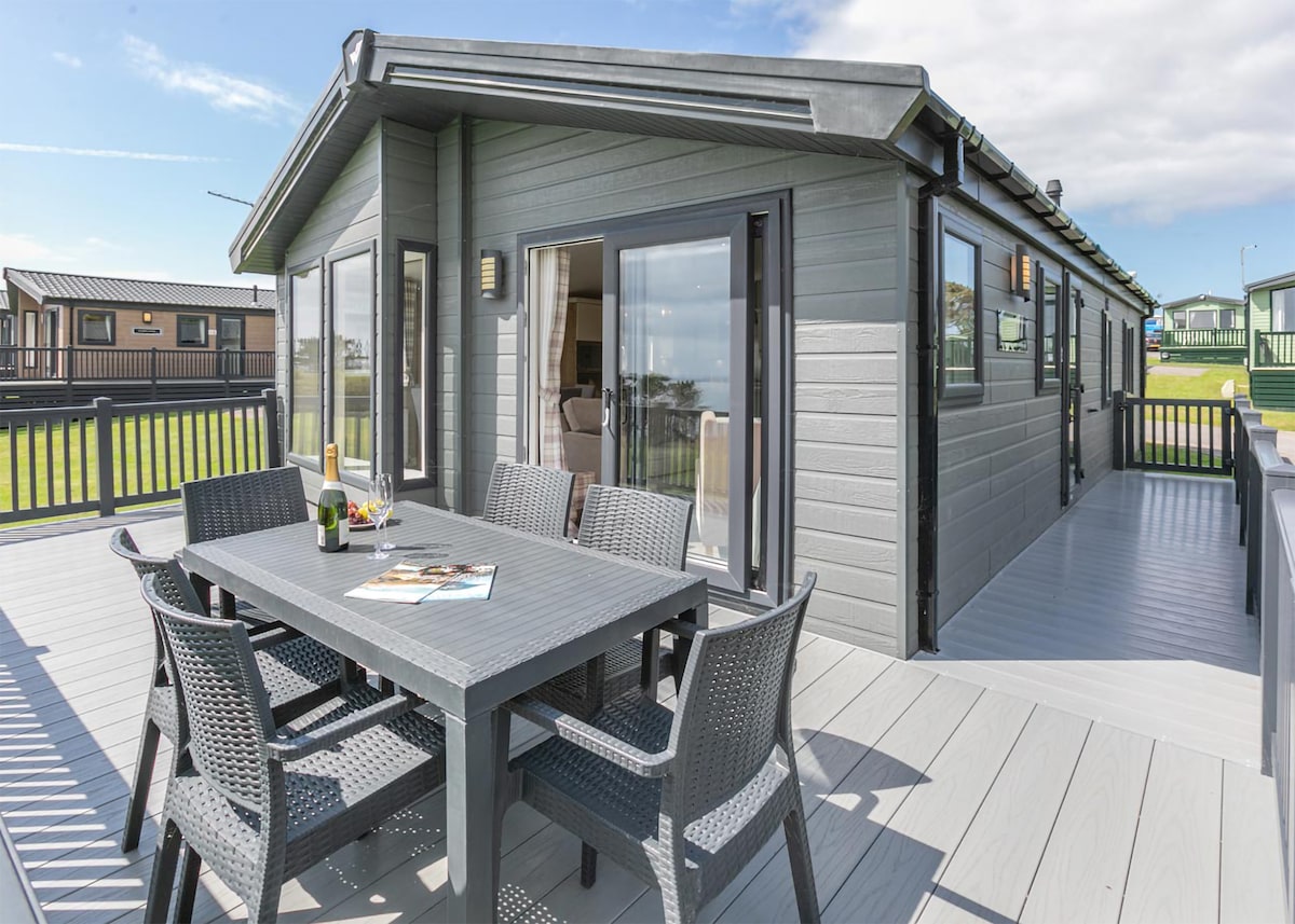 Deluxe Lodge, parking, ensuite, decking & sea view