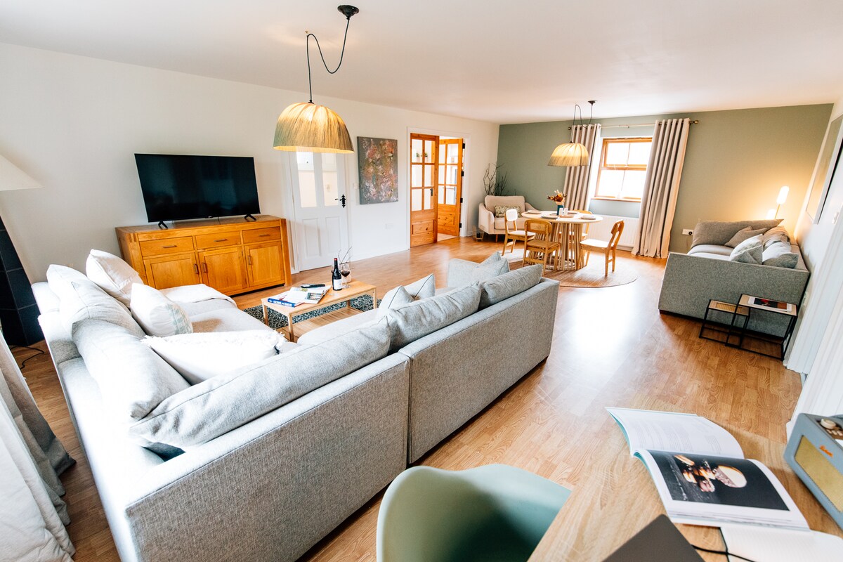 Savršen smještaj uz obalu tokom cijele godine za dvoje. Na obali vode, pružajući veličanstven pogled na more, planine i panoramske poglede. Samo 5 minuta vožnje od velikog tržnog grada i 20 minuta do grada Belfasta. Prikladno za pse. Blizu vodećih terena za golf. Elegantno. Svodni plafoni, veliki prozori od poda do plafona, vrata koja vode do velike terase okrenute prema jugu za piće ili roštilj uz zalazak sunca i balkon iz glavnog apartmana. Sedišta na otvorenom za opuštanje ili večeru. Peć na drva u dnevnom boravku.