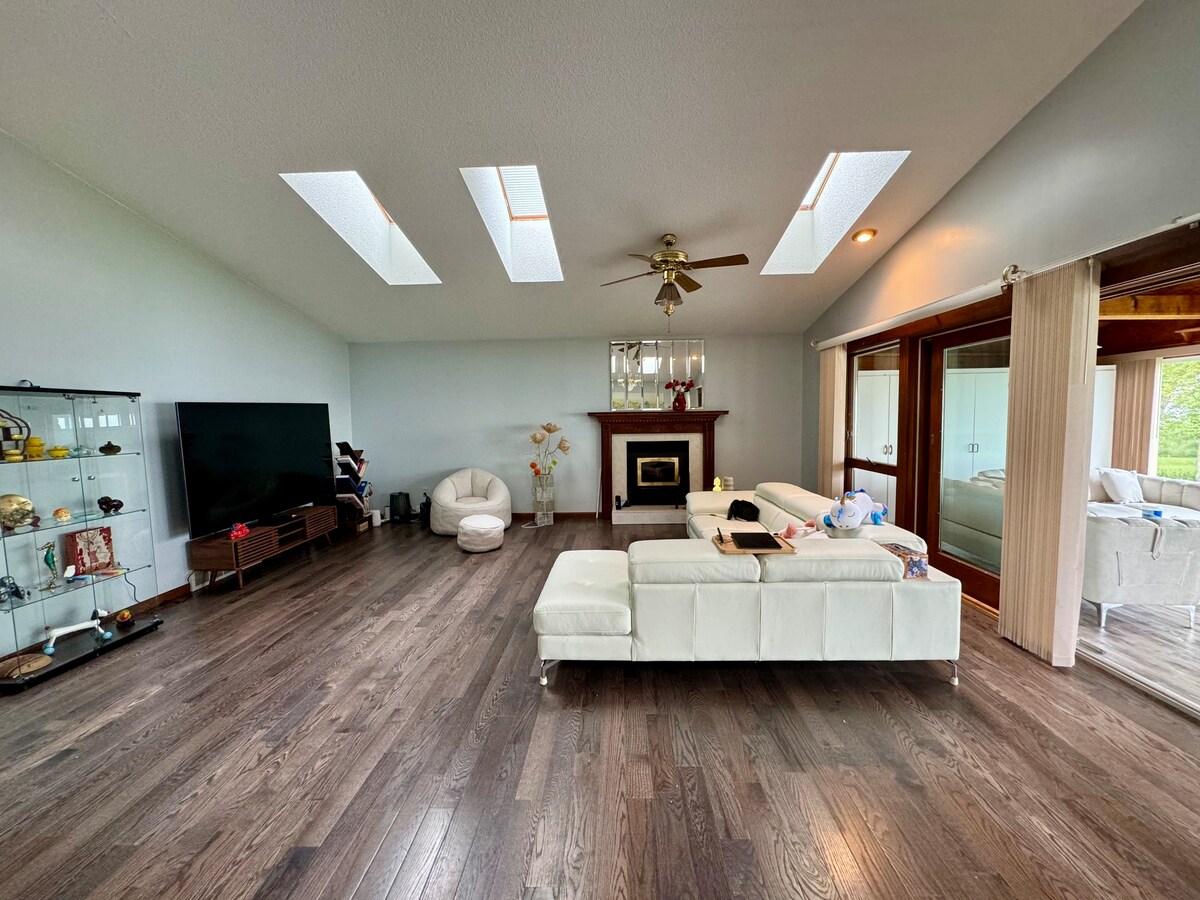 Opustite se u ovom elegantnom smještaju s 4 spavaće sobe pored jezera u prelijepom susjedstvu, savršenom za porodice. Uživajte u ograđenom dvorištu, ljuljašci, tendi na uvlačenje, košarkaškom obruču i završenom podrumu sa ping pongom. Ukusno opremljen sa profesionalnom kuhinjom, kafićem, utičnicom za punjenje električnih vozila u garaži za 2,5 automobila, kućnom kancelarijom. Samo 2 minuta do puta 990, 7 minuta do UB North, 20 minuta do centra Bafala i 30 minuta do Nijagarinih vodopada. U blizini su restorani, prodavnice i još mnogo toga - idealno za odmor, posjete koledžu ili smještaje za vjenčanja.