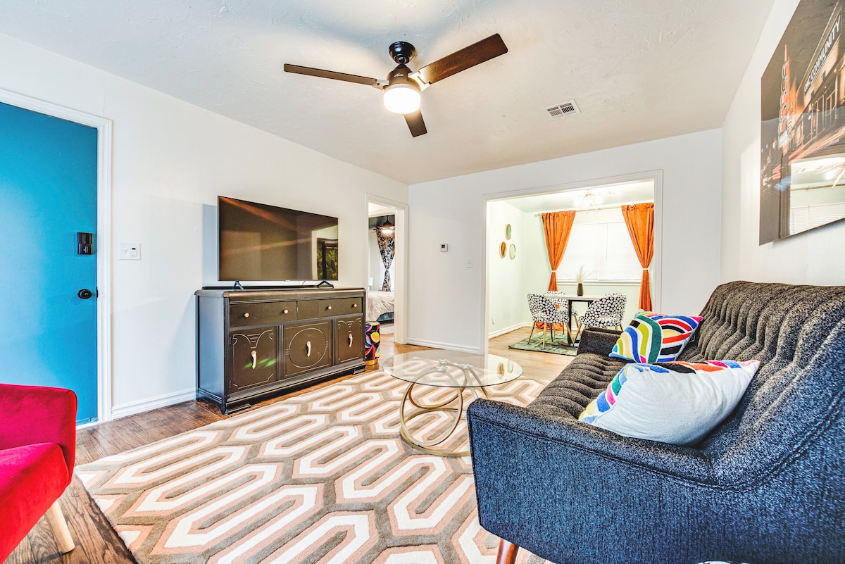 Jedinstven smještaj u srcu Oklahoma Sitija, koji spaja modernu udobnost sa istorijskim šarmom. Ovaj dom u stilu „sa dva ulaza” ima 3 spavaće sobe – dvije sa francuskim krevetima i jednu kancelariju/sofu na razvlačenje – plus kauč na razvlačenje u dnevnoj sobi, dva kupatila i ograđeno, udobno dvorište. Samo nekoliko minuta od umjetničke četvrti Paseo i manje od 10 kilometara od sajmišta Oklahoma. Uživajte u jednostavnom pristupu celom OKC!