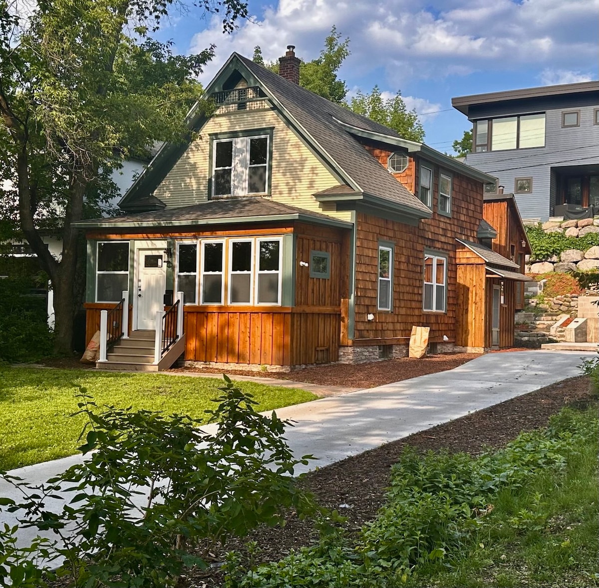 Uživajte u oazi u gradu u kući od kedra u obliku slova A. Ova jedinstvena „gradska brvnara” ima 2 bračna kreveta, privatnu verandu u visini drveta i udoban potkrovlje. Savršeno za ljubitelje koncerata i sporta: prošetajte do The Armory (0,6 milja) i US Bank Stadiuma (0,5 milja). Direktan pristup plavoj liniji do aerodroma MSP, Prve avenije i Univerziteta u Minesoti. Uživajte u potpuno opremljenoj kuhinji, brzom Wi-Fi mrežom, prostranom radnom prostoru i drvenom utočištu nalik brvnari u srcu Mineapolisa. Besplatan parking na ulici u živopisnoj četvrti!