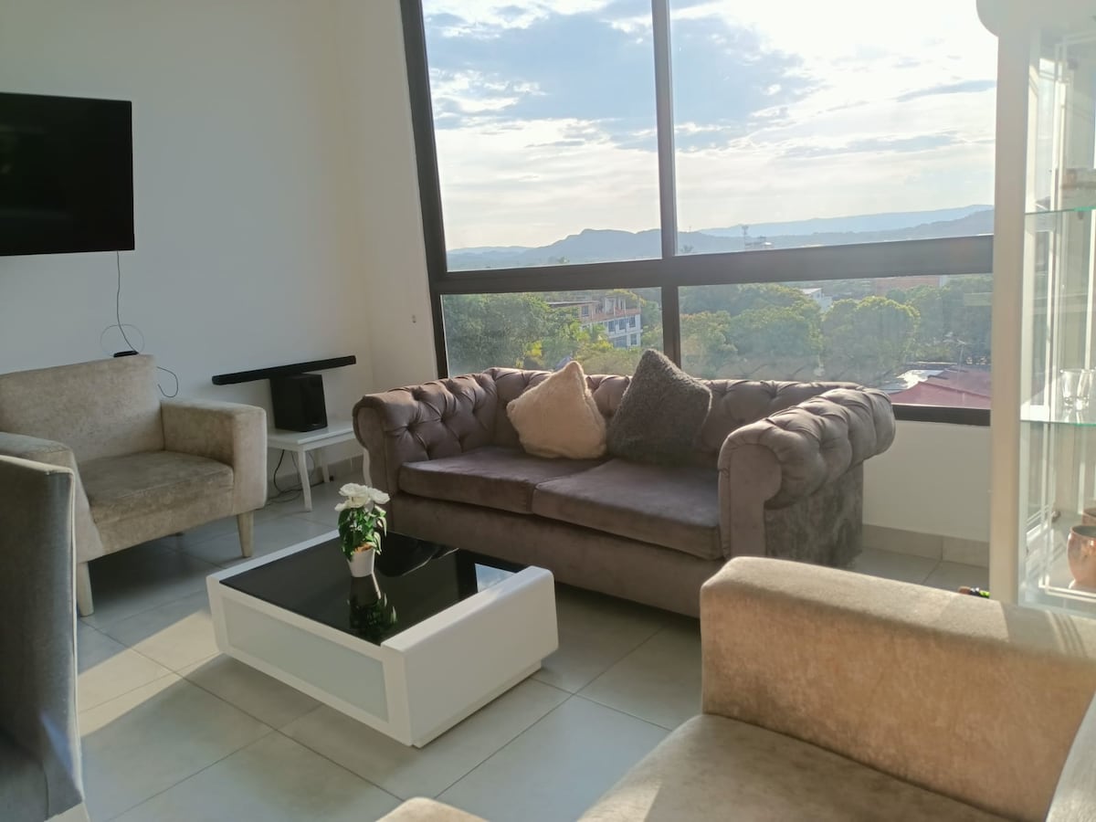 Apartamento, ubicado al lado de la entrada de proveedores de Cafam . Apartamento totalmente dotado, hermosa vista. Consta de 3 amplias habitaciones , totalmente dotadas , con ventiladores silenciosos, cortinas con blackout, Sala, directv, wi-fi Modem 4G, comedor, balcón amplio, cocina integral, parqueadero privado cubierto un vehiculo, sector muy tranquilo y seguro. Solo vivienda. Nota: el uso de la piscina está sujeta a disponibilidad del condominio. La piscina no está en funcionamiento.