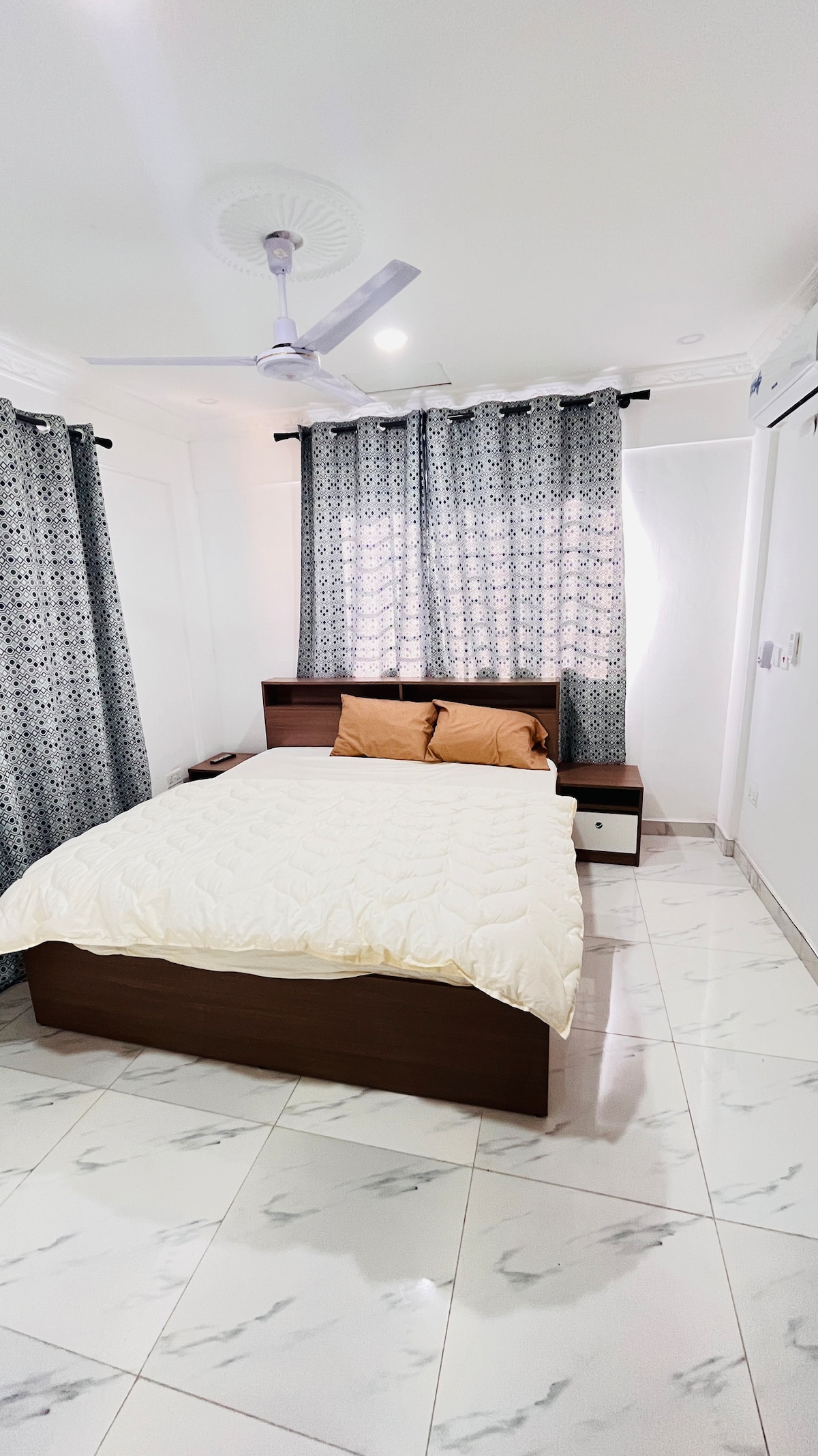 Nalazi se u mirnoj ograđenoj zajednici u Temi (TDC Affordable Housing, Community 26). Miran i bezbjedan smještaj. Idealno za kapije vikendom i radnim danima, medeni mjesec, rad od kuće, porodične kapije 🥳🥳 itd. Pet (5) minuta vožnje do tržnog centra Palace Mall Comm 25, slobodne zone Tema, imanja Devtraco i okoline. 1. Jednostavan pristup tržnom centru 2.24/7 voda i struja 3. Igralište za djecu 4. Besplatan parking 5. Brzi WI-FI 6. DSTV /75” TV 7.Netflix 8. 20 minuta vožnje od aerodroma u Akri