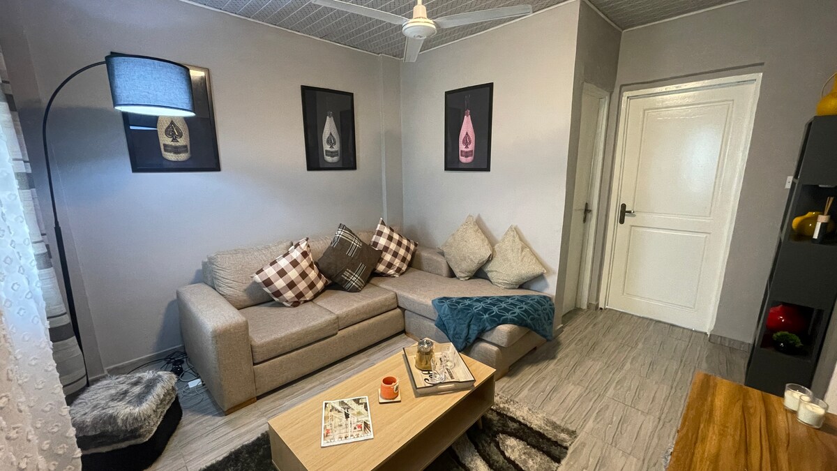 Relax in downy stairs apt. family members and friends at this peaceful 4 different unit villa . You will have 1 unit for your self unless you booked the whole Villa It’s equipped with CCTV cameras, electronic fence with alarm systems, burglar proofing on all windows and security doors at the doors Solar panels for energy, Starlink Internet and solar lamps on the compound. Closer to Tema, airport, Accra mall, Akosombo, Ada , Accra central, beaches etc Airport pickups and rentals