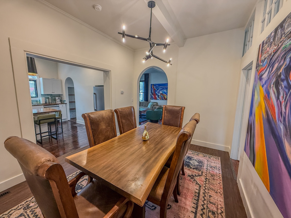 Na pešačkoj udaljenosti od restorana, pivara i prodavnica u umetničkoj četvrti NoDa i Plaza Midvud, ovaj bungalov sa 3 kreveta i 2 kupatila savršen je za porodicu ili grupe prijatelja. Ovaj moderni dom iz sredine prošlog veka ima otvoren tlocrt sa dovoljno prostora za sedenje i opuštanje, formalnu trpezariju, igre, dobro osvetljene prostore za rad na daljinu i renoviranu kuhinju koja je potpuno opremljena svime što vam je potrebno da biste uživali u pripremljenim jelima i okupljali se u kući.