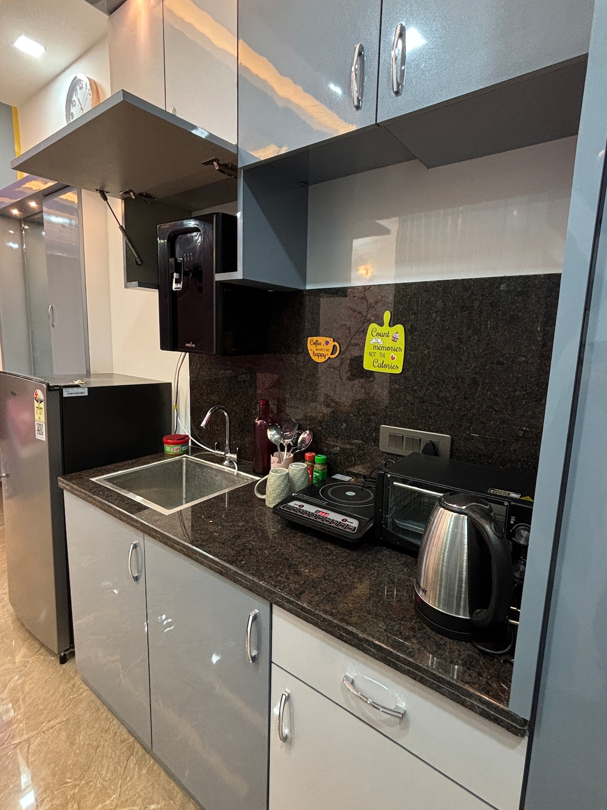 Ovo je vrlo ukusno uređen stan sa svim sadržajima za super udoban boravak. Smeštaj je kompletan privatni studio sa čajnom kuhinjom i mašinom za pranje veša. 7 minuta hoda do stanice metroa Moolchand i 5 minuta do poznate pijace u bloku GK-1 i 10 minuta do M bloka i pijace Kailash. Mnogo prodavnica u okolini. Postoji i ogroman park sa otvorenom teretanom prekoputa. To je dobro provetren podrum sa dovoljno prirodnog svetla i pristupom liftu.