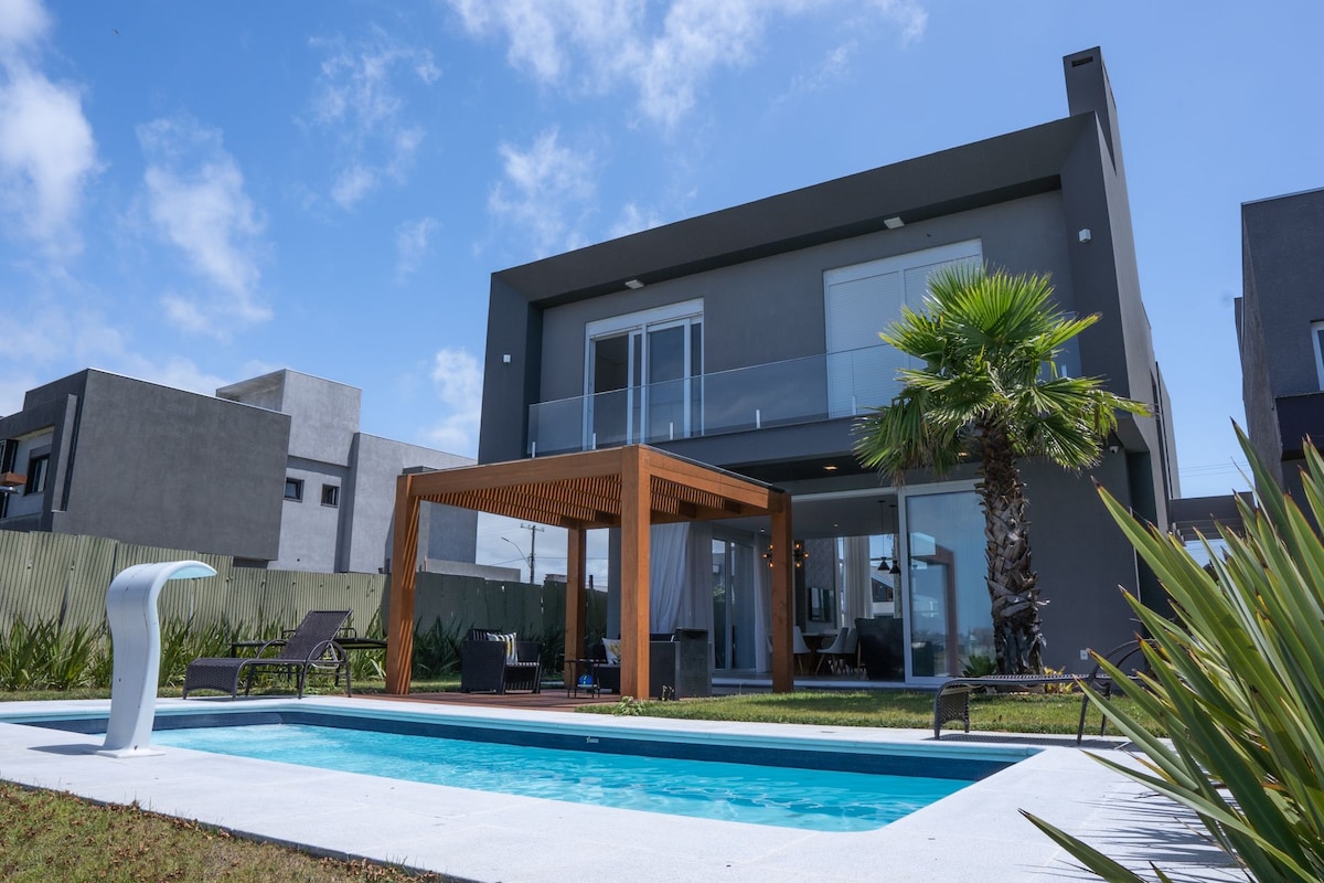 Kuća na plaži nekoliko metara od mora. Nalazi se 200 metara od mora, na mirnom mjestu, u blizini pijace Asun, pekara, apoteka. Kuća ima veliku infrastrukturu i sve alate koji će vaš doživljaj učiniti nezaboravnim. Klimatizovane sobe Džakuzi Futemesa Video igre Sto za snooker Društvene igre Grijani bazen Brinquedoteca Ugrađeni kiosk sa zvukom Moderna kuhinja Netflix i projektor od 120inča Bicikli Sve je najbolje za vašu udobnost.