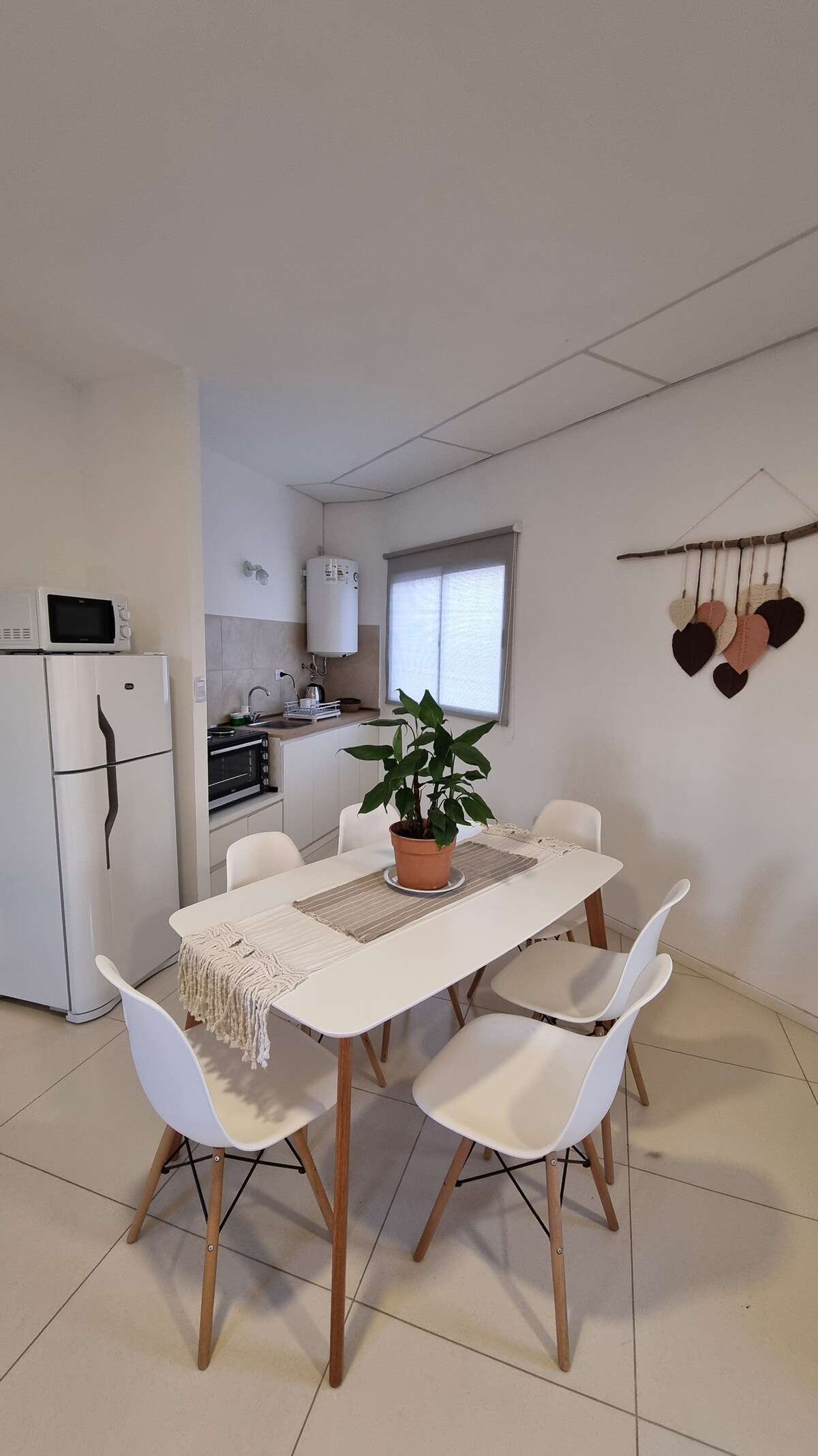 Departamento amplio y luminoso, ubicado en una zona céntrica y tranquila de Chilecito, a pocas cuadras de la plaza principal. Cuenta con dos dormitorios, uno con cama matrimonial y otro con dos camas individuales, además de un cómodo sofá cama en el área de estar. Dispone de cocina comedor totalmente equipada, baño completo y todos los ambientes cuentan con aire acondicionado frío/calor. El departamento se encuentra en planta alta, con acceso por escalera. Incluye cargadores USB y USB-C.