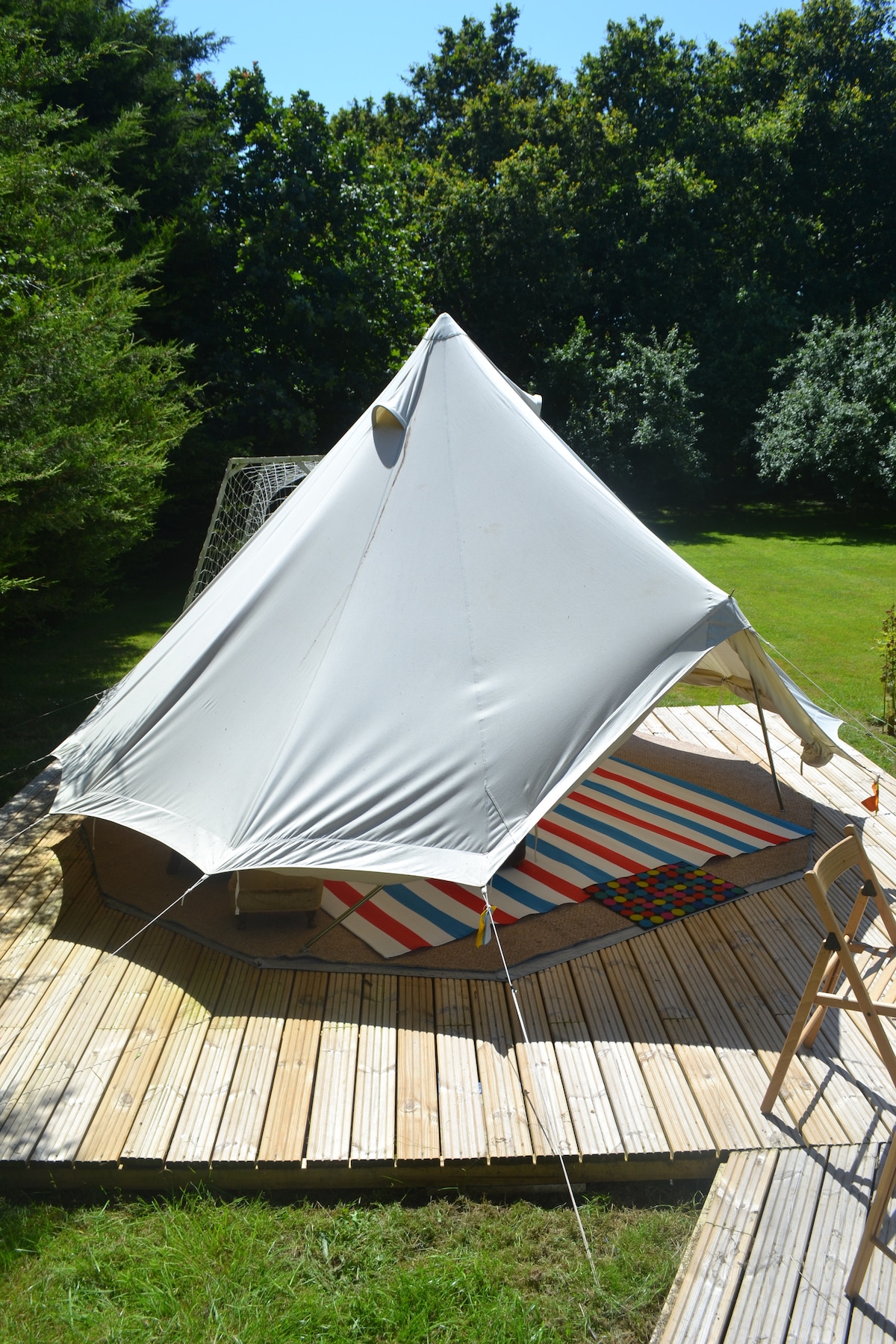 Gosti koriste isključivo skrovitu livadu od pola hektara na mirnoj ruralnoj lokaciji. Smeštaj se sastoji od preuređenog turističkog autobusa „rok“ i šatora sa zvonom na 5 metara. Zajedno spavaju između 2 i 6 osoba (2 u autobusu i 4 u šatoru). Gosti imaju pristup sopstvenom eko WC šolji i tuš-kabini na gas (ili koriste WC šolju za ispiranje i električnu tuš-kabinu u blizini). Sedite oko ognjišta ili kuvajte u natkrivenoj rustikalnoj kuhinji (dvostruka električna ploča za kuvanje, frižider, kuvalo za vodu, toster, topla voda i čepići).