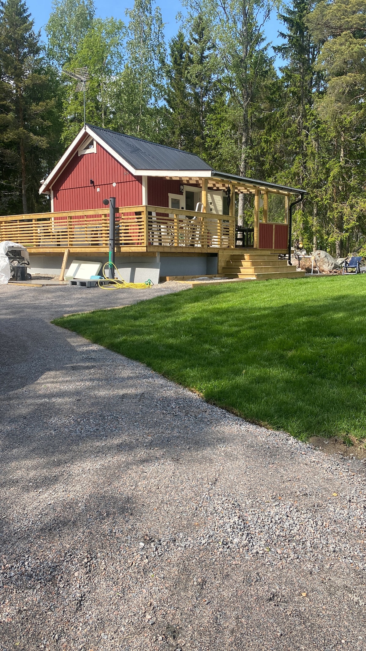 Kuća se nalazi oko 5 km od E4 i 8 kilometara od Söderhamna. Ima potpuno opremljenu kuhinju, uključujući mikrotalasnu pećnicu i mašinu za pranje sudova, tuš i toalet, spavaću sobu sa bračnim krevetom i dnevnu sobu sa kaučem na razvlačenje. Dostupni su jorgani i jastuci, ali gost donosi posteljinu i peškire ili se mogu iznajmiti za 150 kruna po kompletu. Dostupni su TV i Wi-Fi. U dvorištu se nalazi teretana sa stolom za stoni tenis i saunom na drva. Leti postoji i bazen sa grejanjem. Može se iznajmiti i dodatni smeštaj u velikom stanu.