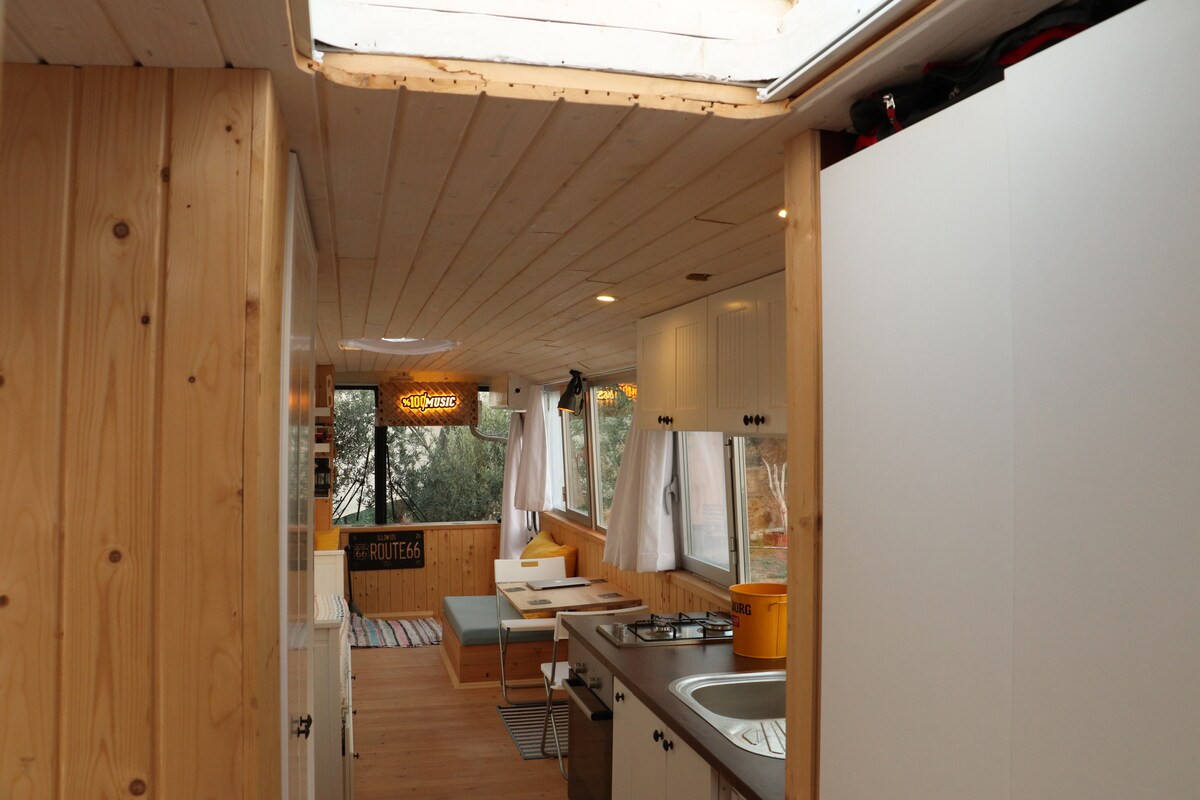 Dobro došli u naš moderan autobus – udoban i zabavan smještaj okružen prirodom u prelijepom području Pafosa! Uživajte u mirnom i privatnom odmoru uz udoban bračni krevet, klima-uređaj, TV sa Netfliksom, aparat za kafu, fritezu i sopstveni tuš u zatvorenom prostoru. Opustite se u maloj bašti okruženoj zelenilom. 🌿 To je odlično mjesto za parove ili samostalne putnike koji žele nešto malo drugačije, tiho i udobno dok borave u blizini Pafosa.