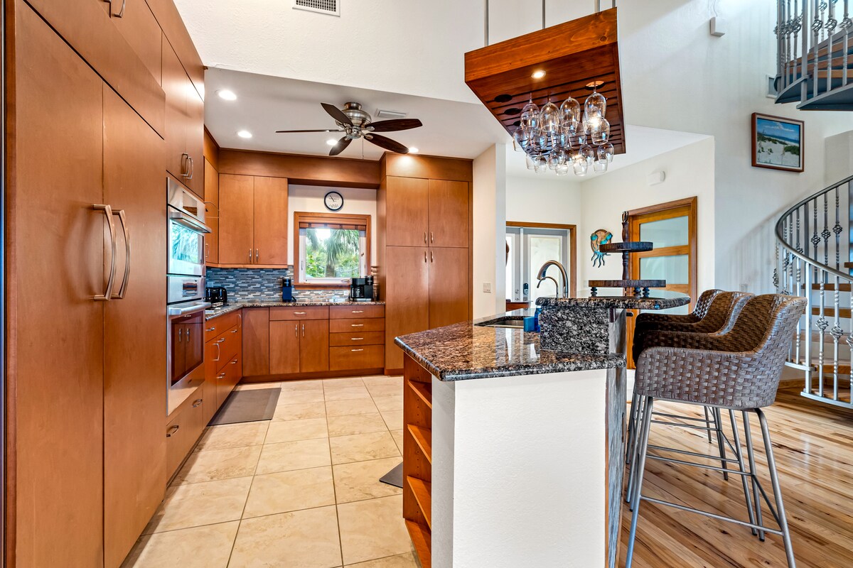 Naš renovirani dom nosi naziv „Prozori na vodi” zbog spektakularnog zida sa prozorima koji gledaju na netaknutu, bijelu pješčanu plažu i Kaptiva prolaz. Opustite se unutra ili napolju na sopstvenoj plaži i uživajte u pogledu na ostrvo Kajo Kosta, jedrilice i divlje životinje, uključujući pelikane, morske krave i još mnogo toga! Nalazimo se na plaži i pored 4 hektara privatnog, nerazvijenog zemljišta zbog čega se naš dom osjeća mirno i osamljeno. Novi na Airbnb-u. Sve recenzije sa 5 zvjezdica (40+) na drugom sajtu za rezervacije!