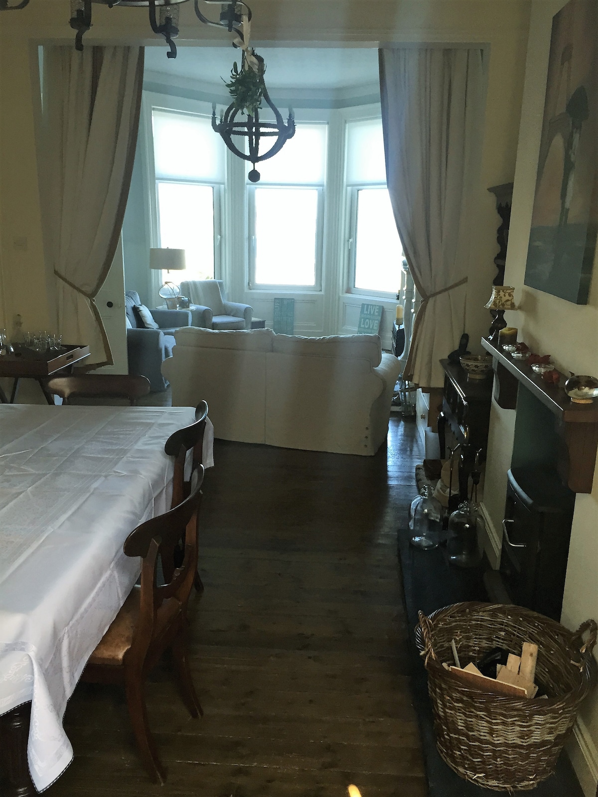 Ovaj prelepi viktorijanski dom je pogodan za parove, solo avanturiste, profesionalce i porodice. Sa neprekidnim pogledom na more, ova kuća je udaljena 10 min hoda od peščane plaže Ballyholme. Ovo je sjajna baza za one koji žele da uživaju u aktivnostima na otvorenom. Centar grada Bangora udaljen je oko 5 minuta hoda, sa mnogim kafićima, restoranima i barovima. Možete da uživate u kreku i zabavi koja ide sa mnogim festivalima koji se organizuju ili da se jednostavno opustite i uživate u miru koji ovo utočište nudi.