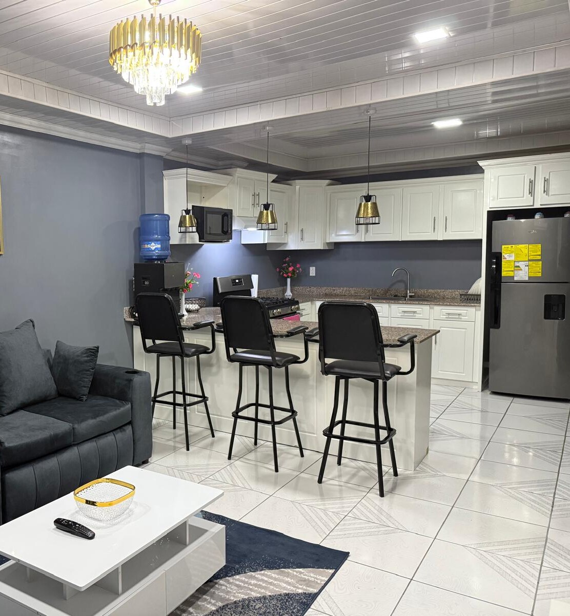 APARTMAN 2 - Potpuno namješten vrhunski stan na gornjem spratu. Generator pripravnosti, topla i hladna voda, sistem za filtriranje vode, detektori dima, klima-uređaji u svim spavaćim sobama, mašina za pranje/sušenje veša, Wi-Fi, TV, bezbjednosne kamere oko 5 minuta od centra Džordžtauna. Dugoročno i kratkoročno iznajmljivanje.