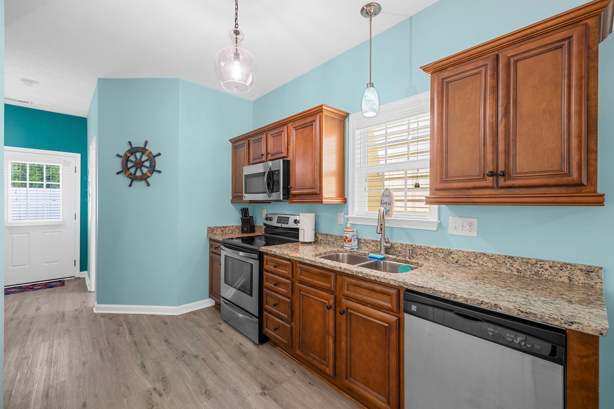 Kreirali smo udoban smještaj na plaži smješten u neodoljivoj četvrti, nedaleko od okeana. Preuredili smo ceo dom svim novim aparatima, podovima i sadržajima. Uređen je da pomogne svakom gostu da se oseća kao kod kuće na plaži. Smještaj je udaljen 5 minuta od Sanset Biča. 10 minuta do Nort Mirtl, Čeri Grouv. I Vilmington i Mirtl Bič su u roku od 40 minuta. U blizini doma ima mnogo restorana, prodavnica namirnica i barova.