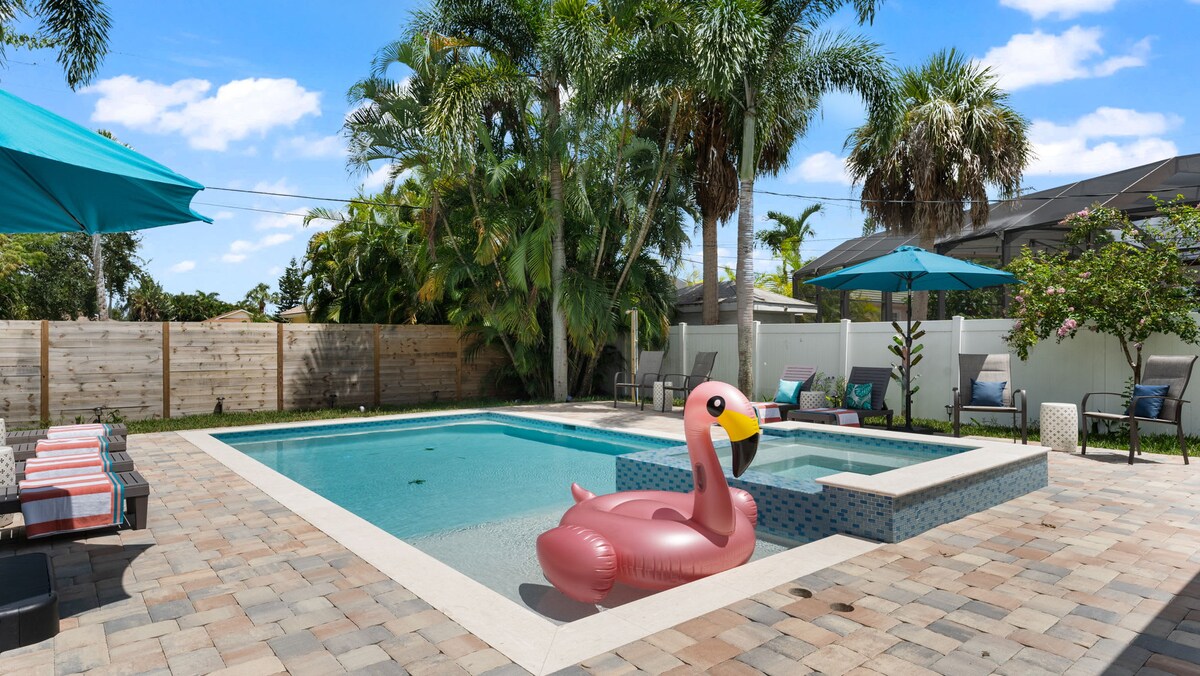 Luxury Naples retreat, 1 mile to Vanderbilt Beach! Completely renovated with high-end finishes, 3 premium king beds, 2 bathrooms, and an open living area. Unwind in the lanai, enjoy the yeah, brand new heated saltwater spa and pool, fire pit and backyard perfect for kids or games. 3 bikes perfect for exploring the scenic coastal paths and attractions. Ultimate comfort and relaxation! Local House Attendant on call during your stay!