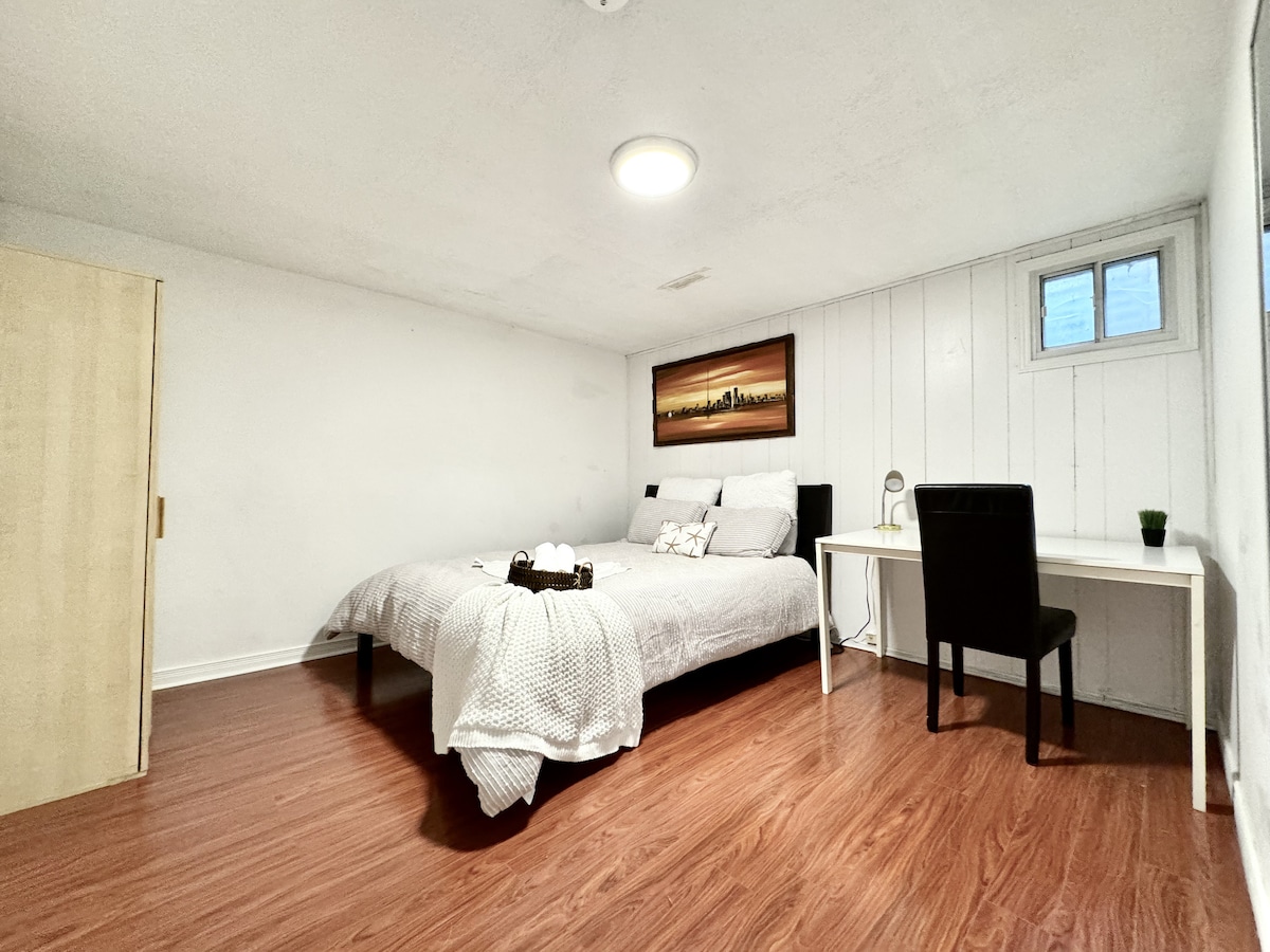 Cozy, bright, furnished basement studio with high ceilings and private entrance—ideal for short-term visitors. This place includes a small kitchen, in-suite washer/dryer, full bath, TV, and Bell 5G internet. Netflix and Prime streaming available. Great location: 10 min to Hwy 401, groceries, restaurants, and easy access to Downtown, Pearson Airport, and Toronto Convention Centre and a short ride to Rogers Stadium . Quiet, smoke-free, pet-free home. Sheppard & Bathurst