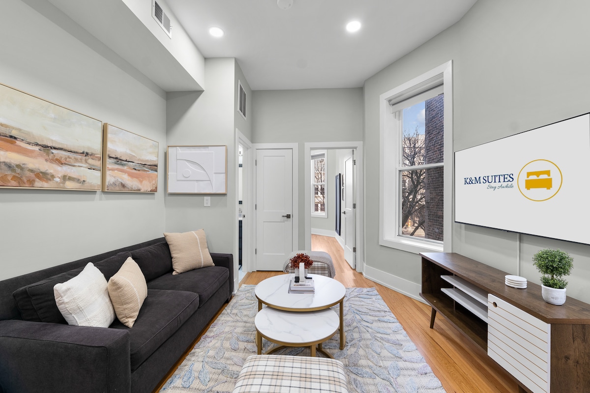 IMATI SVE @ W3A Chicago Vrigli Fild/Bojstaun/Lejkvju - Novo renovirano kao novo u sigurnom centru Istočnog Lejkvjua. -10 minuta hoda do Vrigli polja, grada za dječake, plaže, super marketa, restorana sa restoranima u kasnim večernjim satima. 5 minuta hoda do crvene linije metroa Šeridan (direktno u centru grada), privatnog zatvorenog parkinga 10 $ po noćenju ili besplatne dozvole za parkiranje na ulici -600 posteljine s navojem, mekani mekani jastuci, kućni kaputi, brzi Wi-Fi, zvučnici Sonos, elegantan dizajn i mašina za pranje i sušenje veša u jedinici