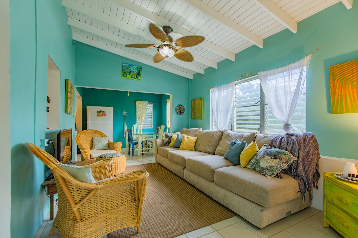 Pobjegnite u ovaj elegantni apartman za goste koji se nalazi u centru grada na skoro hektaru tropskog zemljišta sa šapatnim palmama i voćkama. Ovaj novouređeni studio uključuje potpuno opremljenu kuhinju (sa začinima!) i mirno zajedničko dvorište sa roštiljem. Udahnite karipski povjetarac, opustite se pod zvijezdama i uživajte u našem objektu prikladnom za 420 osoba - samo je zabranjeno pušenje u zatvorenom prostoru. Savršeno za parove, putnike koji putuju sami ili bilo koga ko traži mir, udobnost i autentičnu ostrvsku atmosferu.