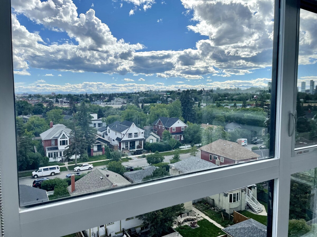Dobro došli u naš svijetli i prostrani kondominijum sa 2 spavaće sobe i 2 kupatila u četvrti Beltline u Kalgariju. Savršen za porodice ili male grupe, naš moderni prostor ima udobne spavaće sobe sa plišanom posteljinom, potpuno opremljenu kuhinju i prostran dnevni boravak sa prelijepim pogledom na grad. Uživajte u pogodnostima pranja veša, brzom Wi-Fi-ju, roštilju na prirodni gas i besplatnom parkingu u zatvorenom prostoru. Sa popularnim kafićima, restoranima i atrakcijama na samo nekoliko koraka, naš kondominijum je savršena baza za istraživanje Kalgarija.