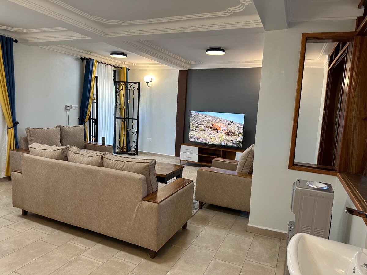 Dobro došli u vrhunski 2BR smještaj u SkyNest-Sorotiju. Bilo da se radi o poslovnom, školskom ili slobodnom vremenu, uživajte u mirnom odmoru u četvrti Maroon Quarters, 5 minuta od grada u blizini škole letenja i Univerziteta Kjambogo. Uživajte u mekoj posteljini u oblaku, moderno opremljenoj otvorenoj kuhinji, brzom Wi-Fi-ju, bezbjednosti non-stop, čuvaru na licu mjesta, parkingu i pažljivo osmišljenim dodacima kao što su poslastica u korpi za voće, voda i pribor za prvu pomoć. U SkyNest-u je to više od boravka - to je topao i elegantan doživljaj. Rezervišite sada i osjetite SkyNest razliku.