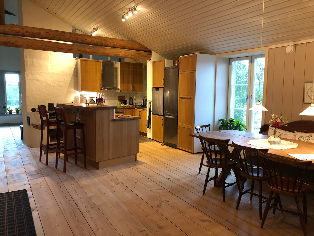 Ako vam treba odmor od svega, imamo savršeno mjesto za vas: Fähus. Ovaj luksuzni apartman, smješten u nekadašnjoj štali naše male farme, može udobno da ugosti do 8 osoba. Prostran je i svijetao, s velikom namještenom verandom za roštiljanje, s pogledom na prelijepu šumu. Odlično funkcioniše za grupe, dvije porodice ili ako želite da povedete baku i deku na odmor! Obratite nam se za više informacija o tome kako možemo da vam pomognemo.