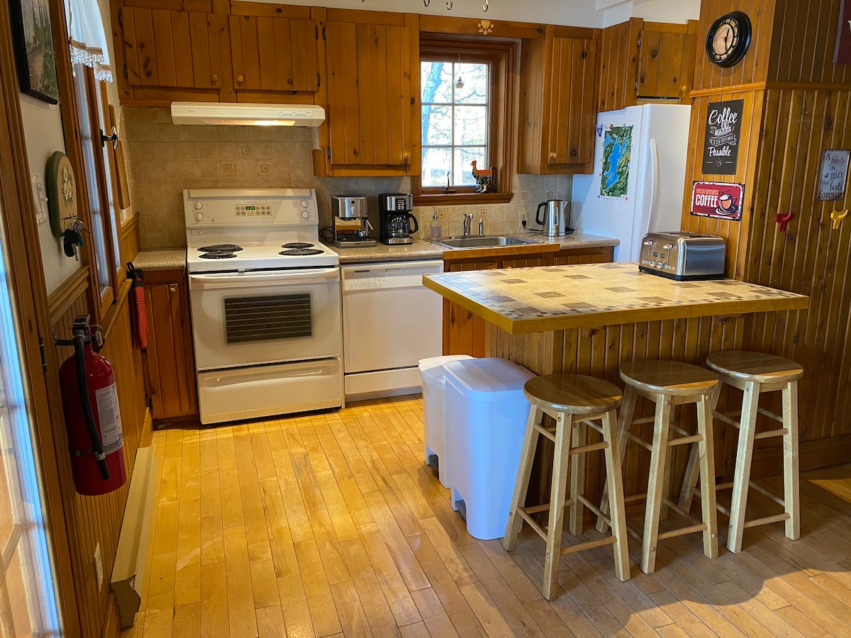Pobjegnite u naš najbolje ocijenjeni smještaj uz jezero - nadograđeni smještaj s 3 spavaće sobe i odvojenim krevetom na sprat, 2 kupatila, za sva godišnja doba, samo 1 sat i 20 minuta od Parliament Hila! Sa zadivljujućim pogledom, zaštićenim trijemom, nevjerovatnim ljetnjim pristaništem, opuštajućim ognjištem na otvorenom, kajacima, cipelama za snijeg, udobnim kaminom i prostorom za 8 gostiju, ovo nije vaš prosječni odmor. Potpuno opremljen, lijepo održavan i savršen tokom cijele godine. Miran odmor u prirodi sa svim udobnostima doma, a zatim i više od toga!