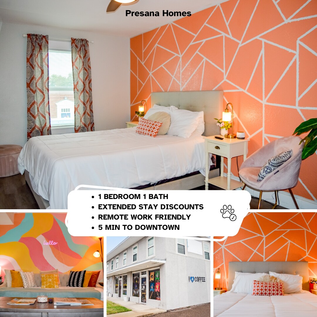 Enjoy our comforting and relaxing completely remodeled modern farmhouse, blocks from downtown restaurants, bars, parks, museums, galleries, event center, marina, and the downtown beach with promenade. Great views of birds from the patio. New appliances, modern spa bathroom, blackout curtains, 2 HD TVs, Roku/streaming services, USB ports, office space with fiber WiFi, and sleeper sofa. Private patio with outdoor hot/cold shower, glider swing, bistro set, grill, mist fan & herb/pollinator garden.