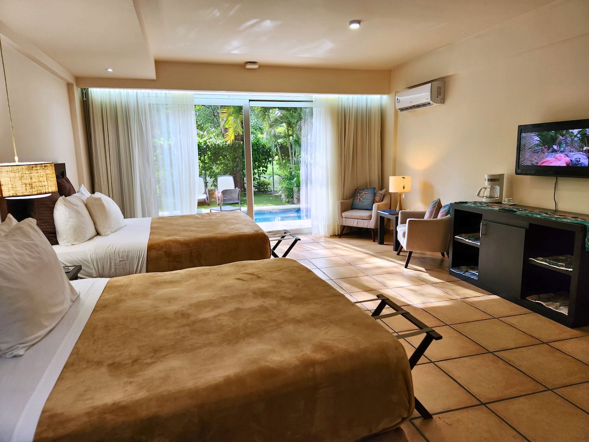 Uživajte u jedinstvenom boravku u apartmanu Kolibri, sa polu-privatnim bazenom, unutar ekskluzivnog kompleksa za golf i plažu u Koronadu. Opremljen bračnim krevetom, kaučem na razvlačenje, TV-om, sobnom uslugom, Wi-Fi mrežom i privatnim kupatilom, savršen je za opuštanje. Gosti uživaju u bazenima, restoranima, teretani, spa centru (po dogovoru), golfu s 18 rupa (samo kolica za plaćanje), terenima za tenis i pikbol i privatnom klubu na plaži. Idealno za miran odmor ili aktivan odmor.